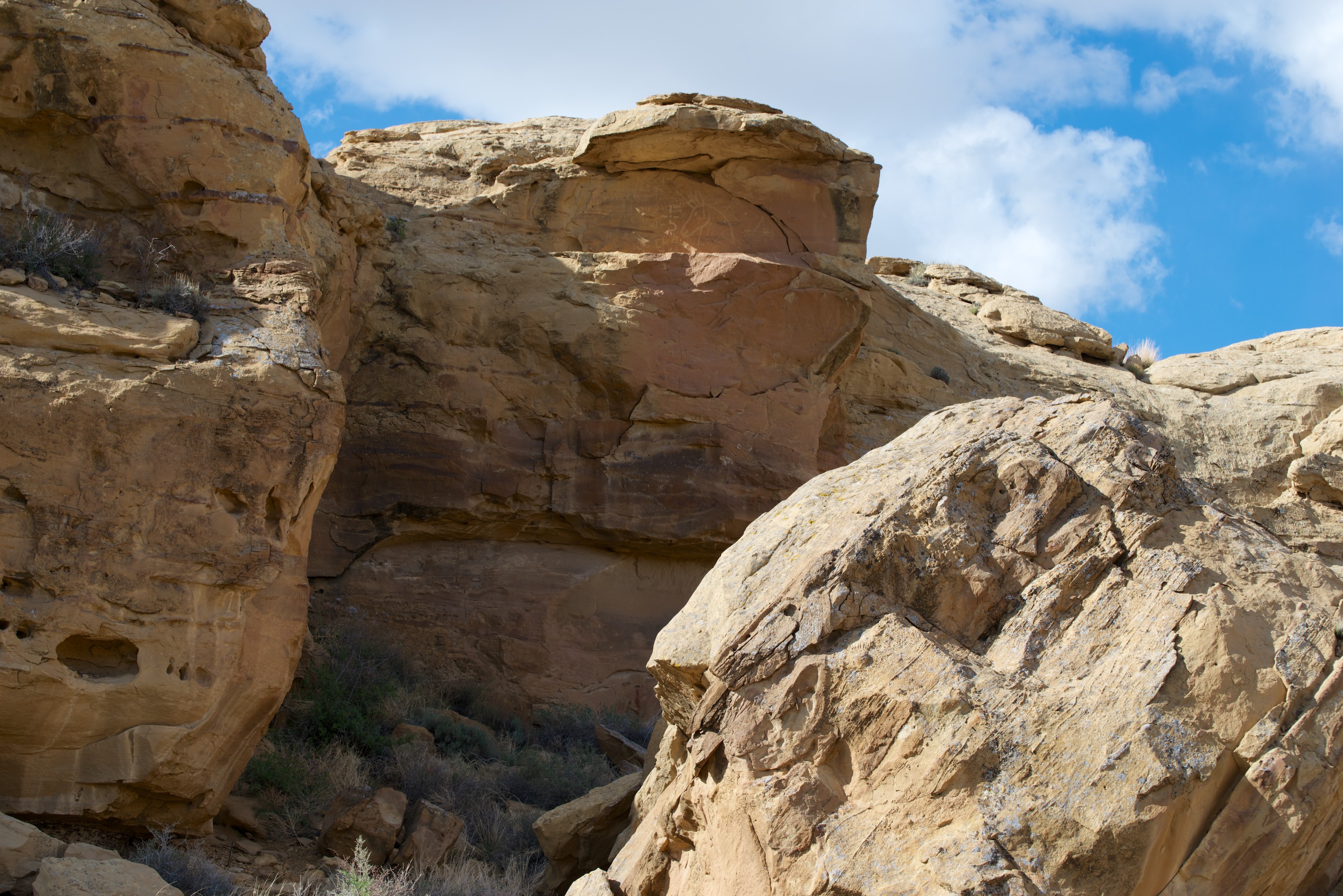Next day, we were able to talk our way into a second night’s camping (someone had left early), so we signed up for that and then set out to view the sites. There are five in total and we only saw three before exhaustion set in. We began by hiking in a ranger guided tour to Una Vida, a small great house, most of which was under our feet as it has not been excavated. The ranger was informative and we learned a lot about the sites as a whole. We then climbed the cliff to view the petroglyphs (and take photos of course). We then saw Chetro Ketl and Pueblo Bonito, both large sites with multiple buildings with many rooms and kivas, both the large Great Kivas and small kivas and round rooms.