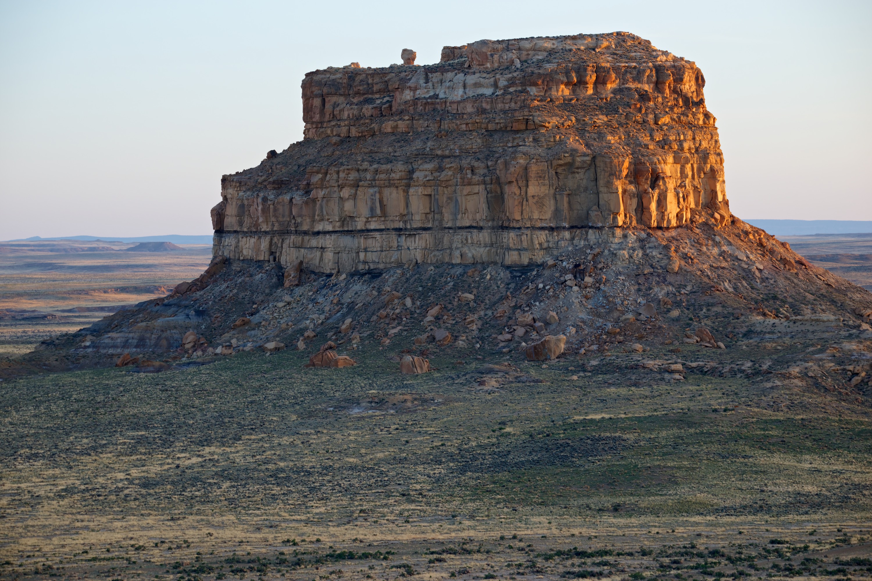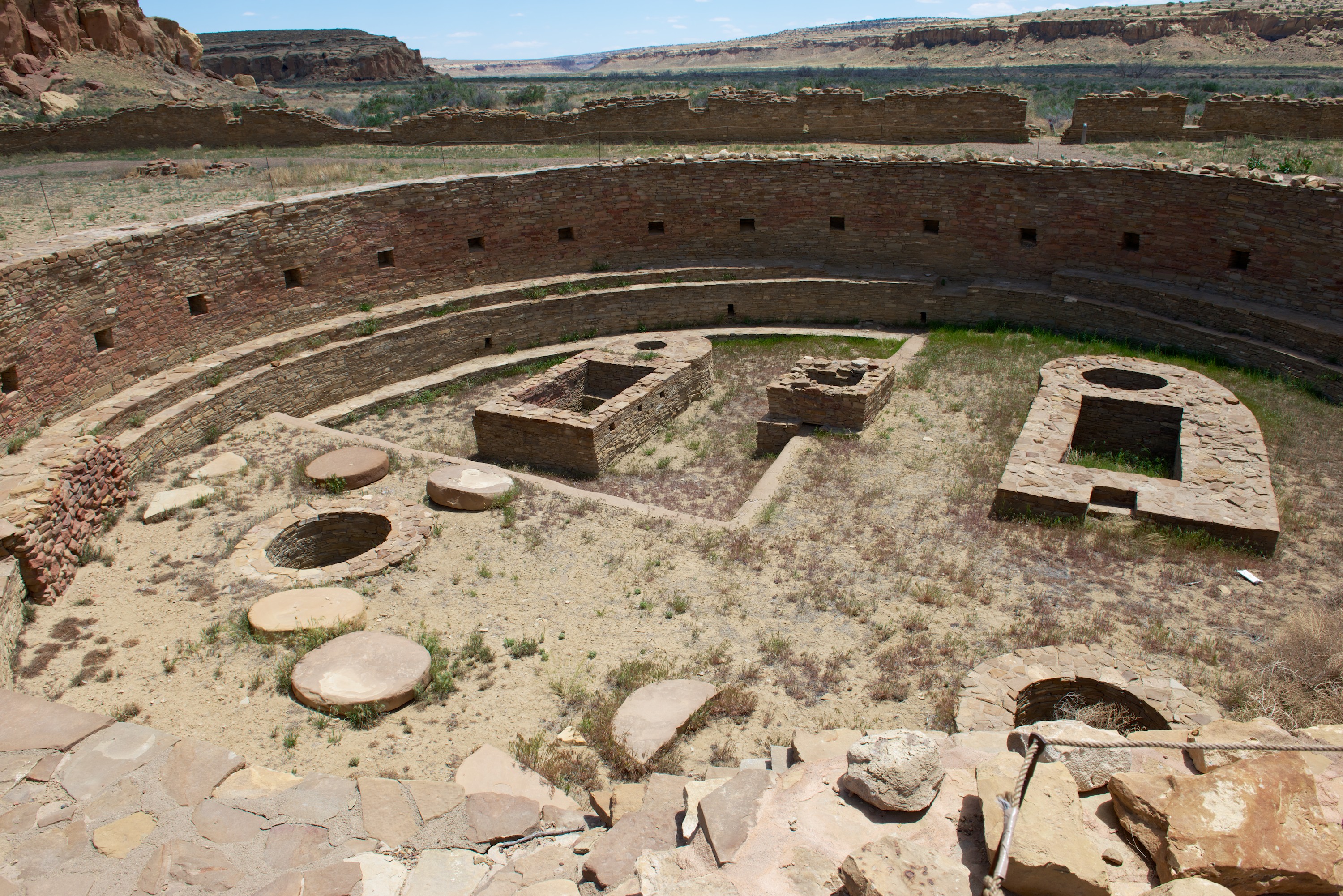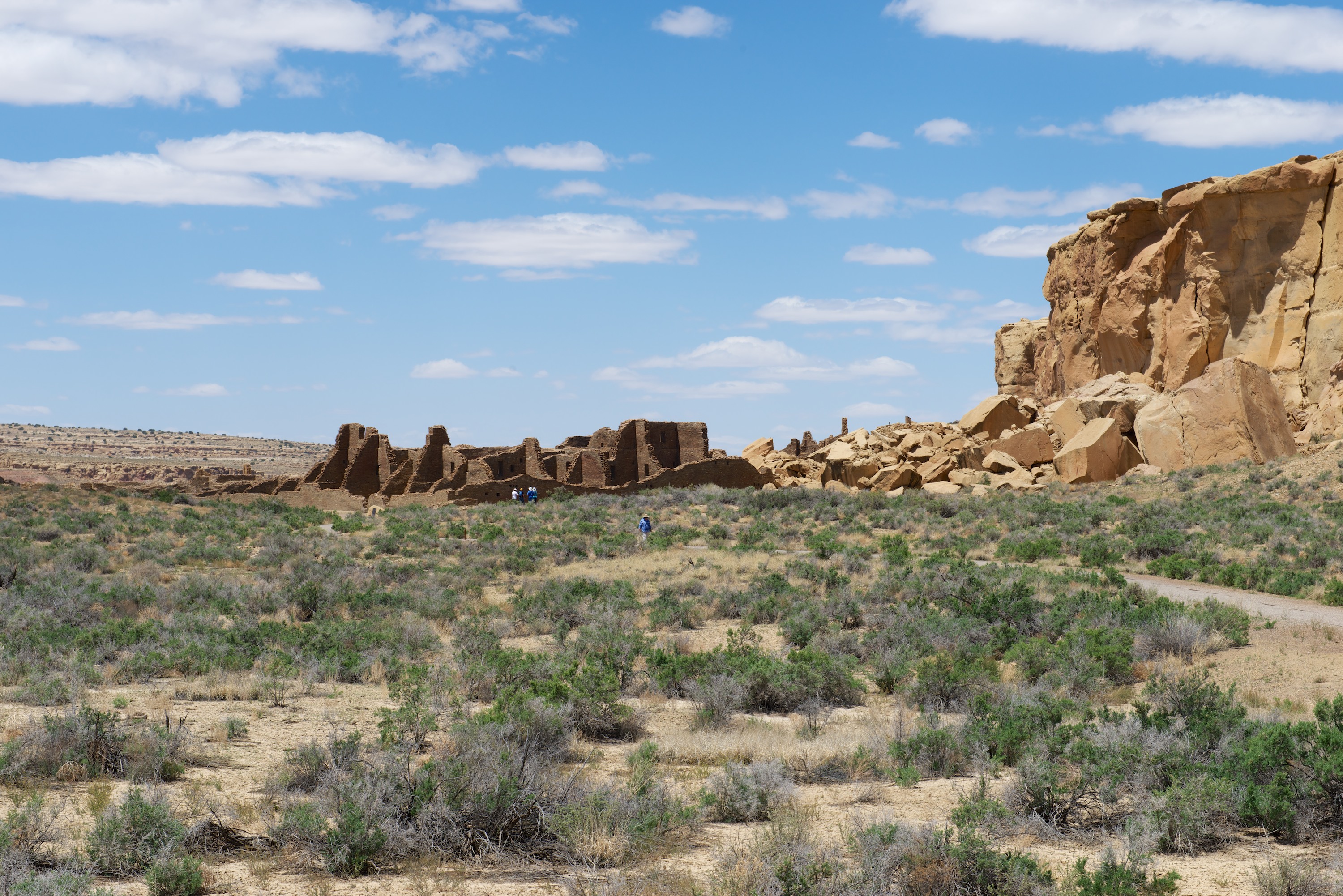 The massive ruins of Pueblo Bonito rise four stories tall.
