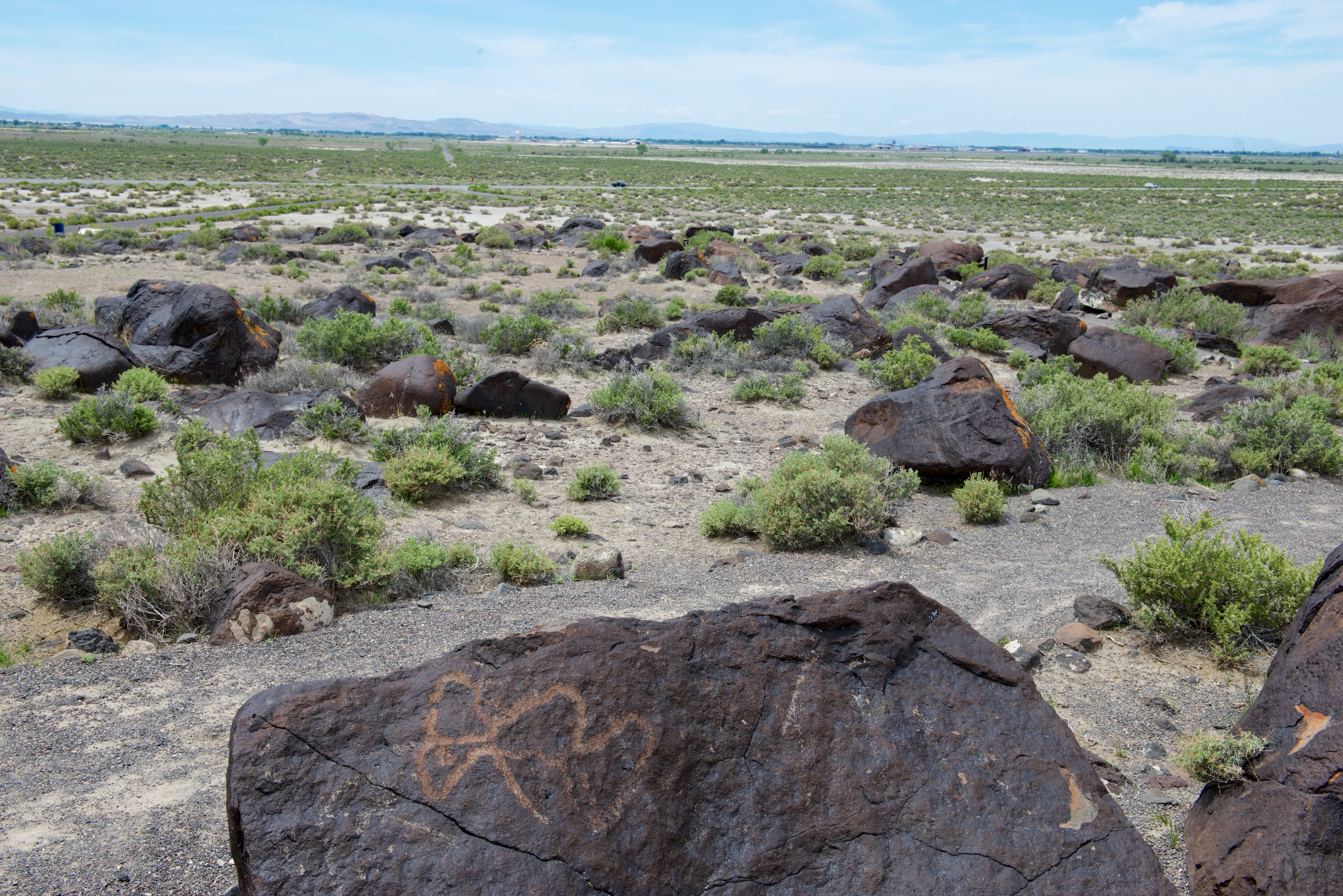 We also saw the petroglyphs at Grimes Point Archeological Site, all inscribed on boulders and some dating back multiple thousand years. All are weathering. One wonders how long they will be visible. Grimes Point is right next to the Fallon Naval Air Station and there is quite a juxtaposition between ancient petroglyphs and modern jet fighters.