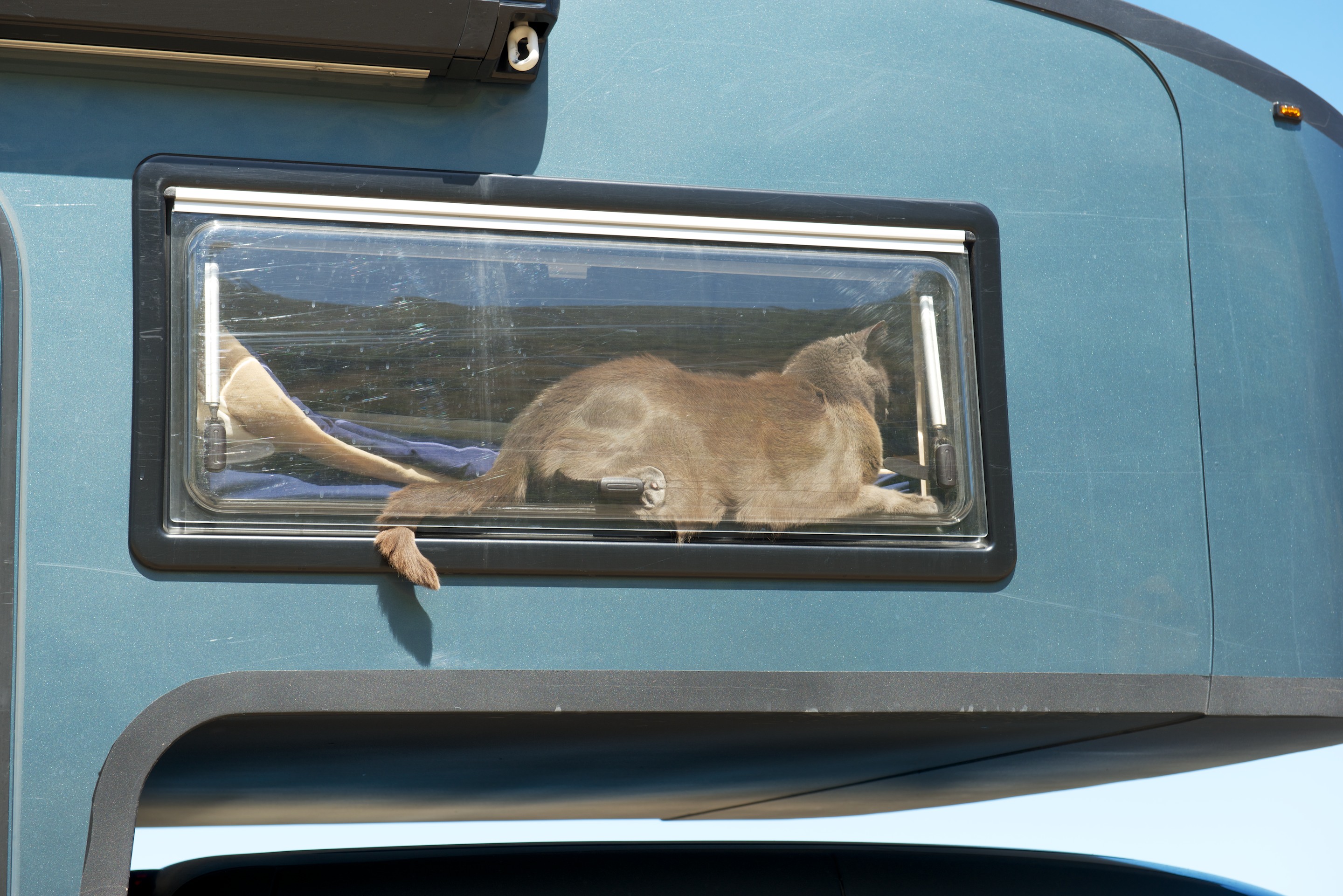 The Blue Cat was a bit less impressed by the scenery, but he did like toasting in his window, with his tail casually blowing out the window. (This is known as Cat-Under-Glass.)