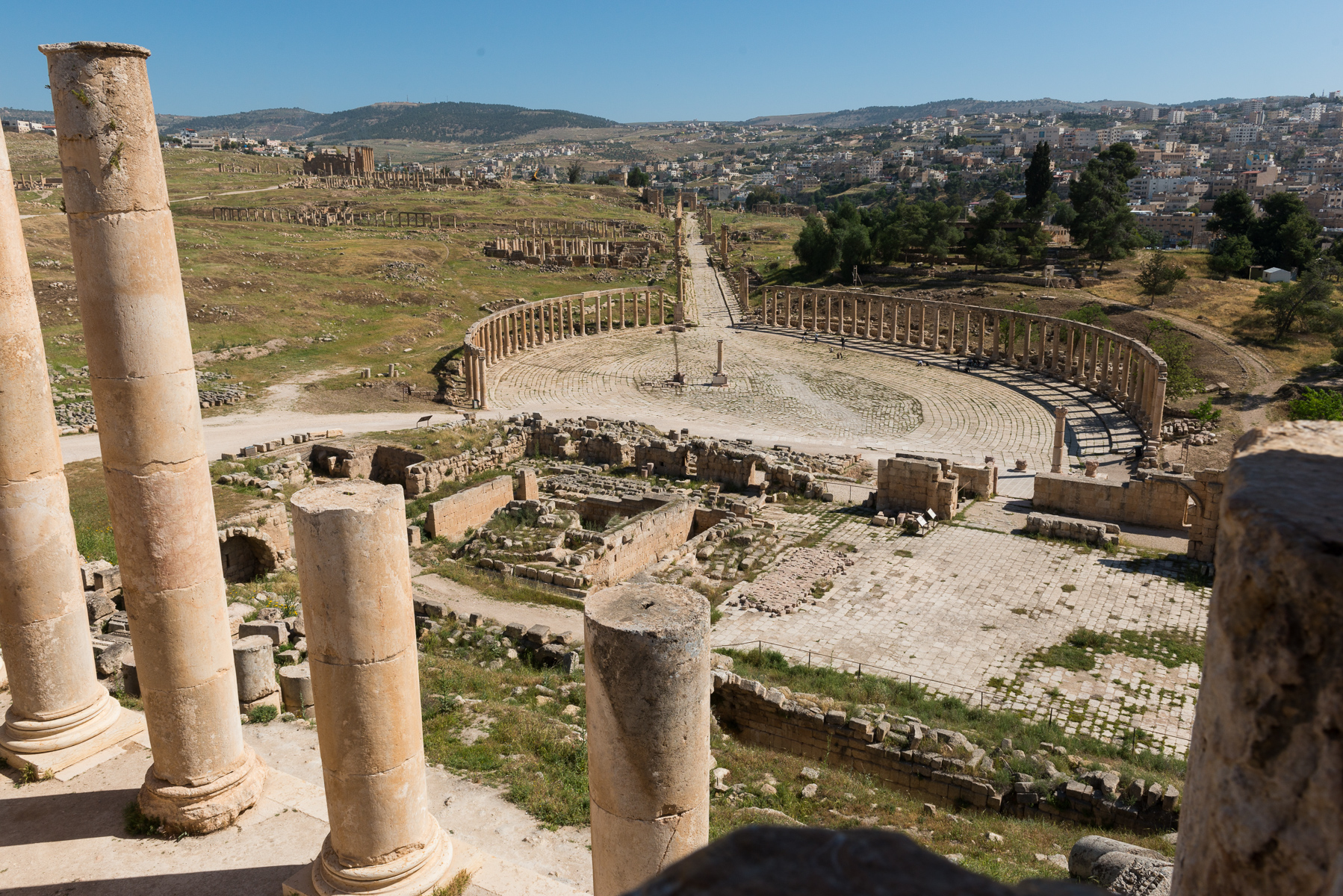 The main city center is down there on the valley floor with a wall of tombs in the background.