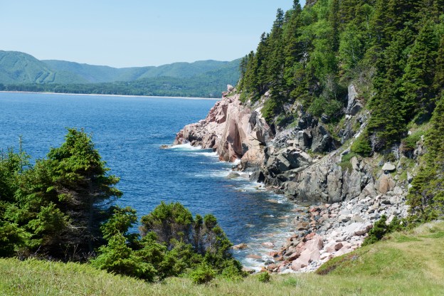We continued south around the curves and the ups and downs of the Trail towards Cheticamp.  The grades are noticeable, in the 14% to 16% range for the most part, which Fred and the 917 found exciting at times. Let us say that Fred and the exhaust brake are good friends! Safely in Cheticamp, we headed for the Cape Breton Highlands National Park campground and checked in.