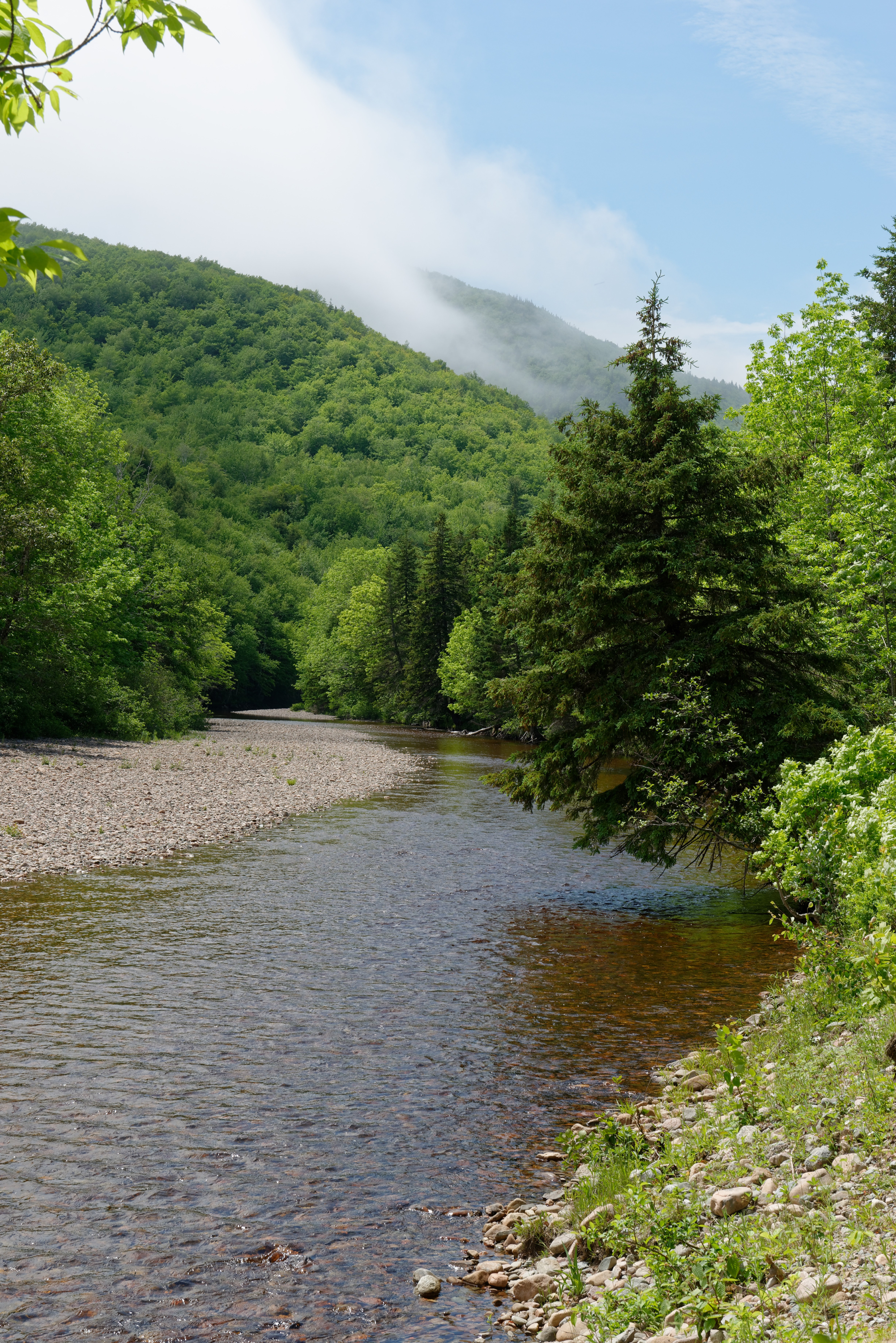 We then headed north to the Cape Breton Highlands National Park (https://www.pc.gc.ca/en/pn-np/ns/cbreton), where we had a reservation in one of their campgrounds, Broad Cove.  Having been told that all of the campsites would be full for Canada Day, we had decided that this would be the perfect place to celebrate.   Our site turned out to be huge with lots of trees.  No services but that is not a problem for us and the Blue Cat liked the site a lot. (It’s all about the cat.)