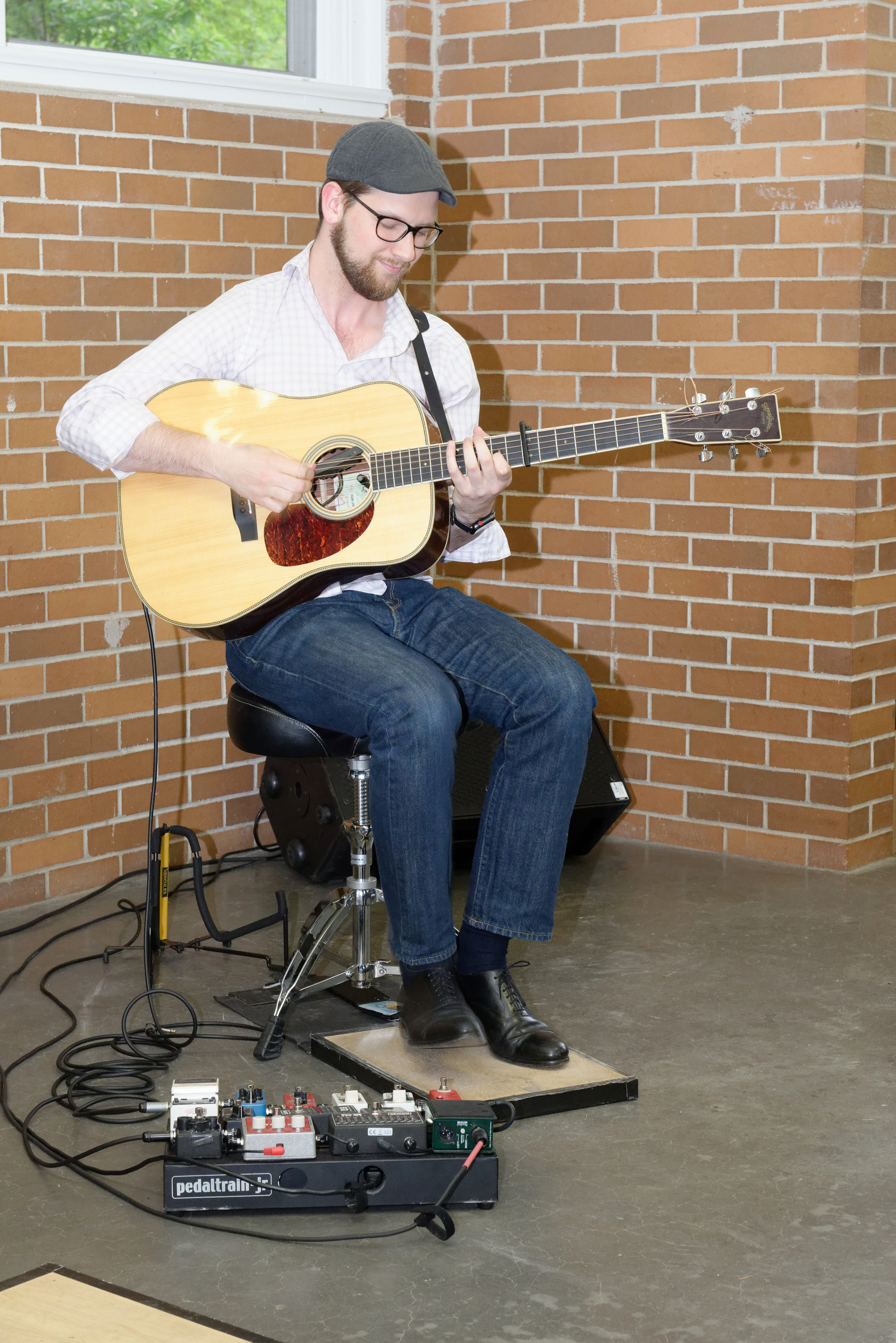 Note the tap shoes and floor board. (And a pedal board that would make a rocker proud.)