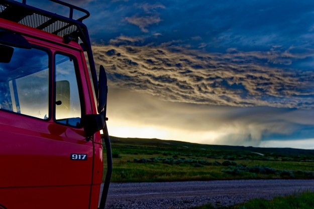 We spent a pleasant night up on the bluff surrounded by pronghorn deer and stayed warm and dry while the wind howled and the rain fell! We have been experiencing lots of afternoon storms in Colorado and in Wyoming and some of them are quite violent.