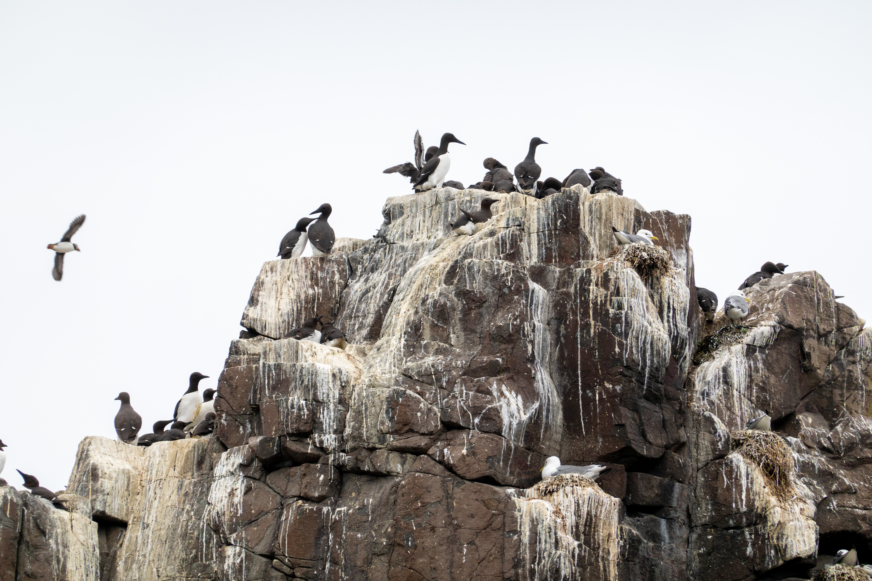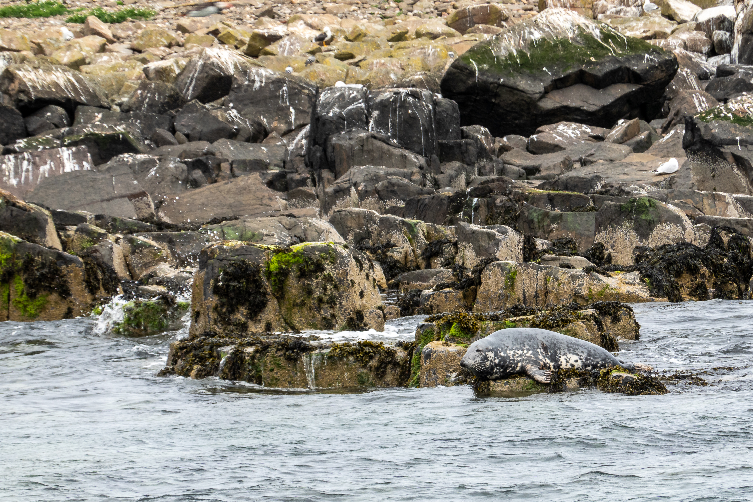 The day dawned grey and cold and the sea was quite rough. We were glad to have dressed warmly for the sea crossing as there was no shelter on the boat. The best part of the trip was passing by the Farne Islands which are closed to landing because of the risk of avian flu. Sailing by, we were able to see thousands of nesting birds, kittiwakes, ghilliemoffs, shags, puffins and a gannet or two. We also saw a number of grey seals.