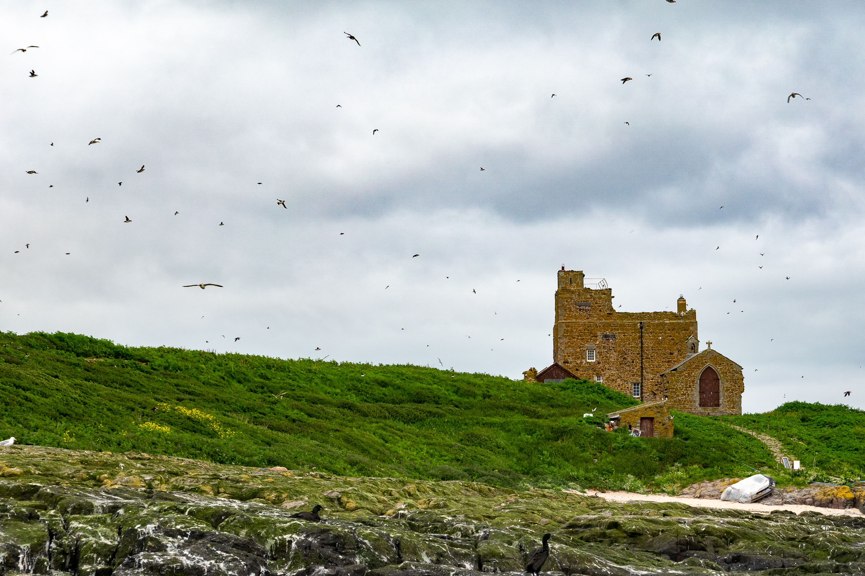 After about an hour sailing around the islands, we sailed up the coast past Bamburgh castle to Lindesfarne.