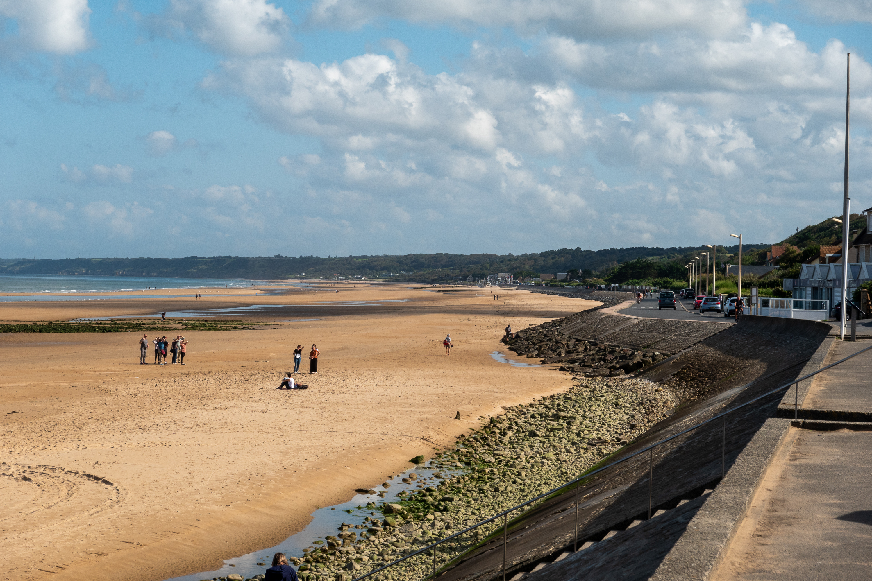 Looking at the cliffs behind us, made us very much aware of the challenges faced during the Normandy landing. They are steep except for five draws, which were of course the main objectives for the Allies and guarded by the Germans. No movie has yet managed to show just how steep the cliff is behind Omaha beach. (“Saving Private Ryan” is close, but the reality was still worse.) (https://warfarehistorynetwork.com/article/vierville-sur-mer-cracking-a-cricial-draw-at-omaha-beach/#:~:text=The%20Vierville%2Dsur%2DMer%20Draw%2C%20a%20road%20that%20cut,long%2C%20crescent%2Dshaped%20shoreline.)