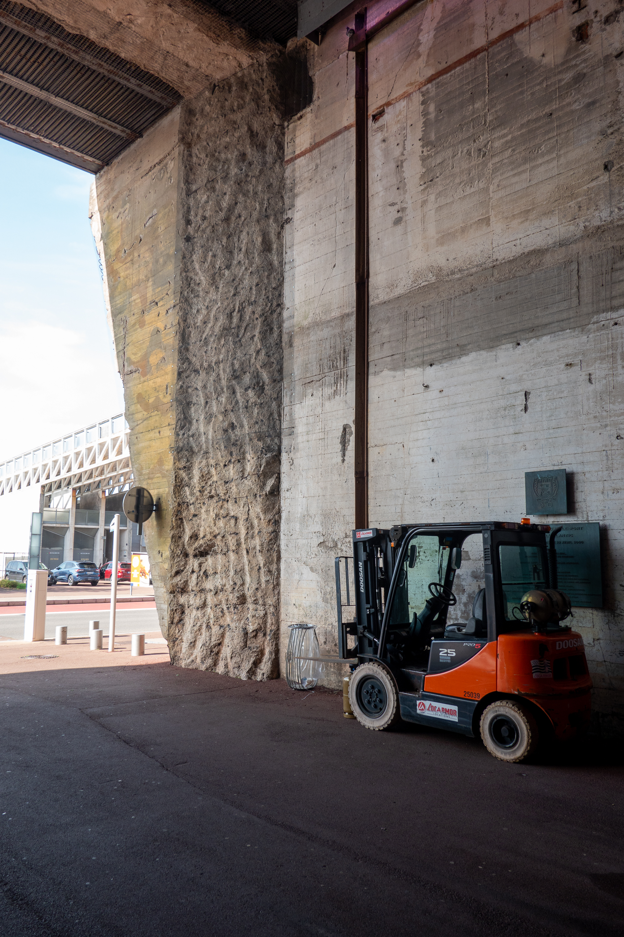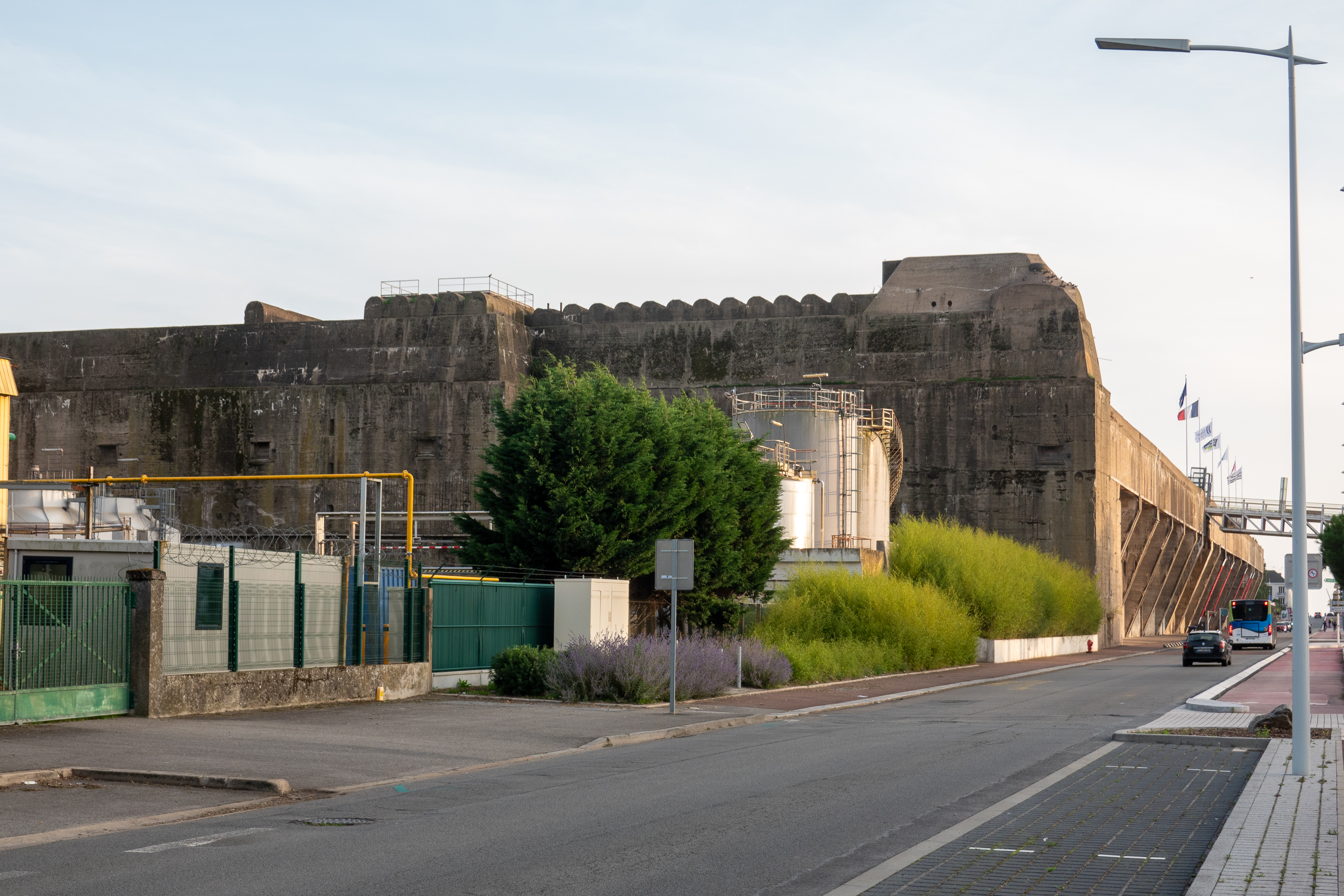 As we were slightly off route, we headed for St. Nazaire were Fred wanted to visit the former German submarine pens. The Battle of the Atlantic has been called the longest battle of the war and winning it kept Great Britain in the war and made possible the Normandy invasion. There are many, many studies, Fred recommends Jonathan Dimbleby’s book as he spends a lot of time on the strategic and diplomatic challenges of the Atlantic battles; the “why” as well as the “what.” Obviously, the major German protagonists were submarines based in France. Early on, the Germans realized that the submarines were at their most vulnerable when in port and thus constructed an amazing series of massive, bomb proof buildings. (https://en.wikipedia.org/wiki/Submarine_pen#:~:text=the%20preliminary%20stage.-,France,metres%20of%20concrete%20were%20used.) Fans of the famous Dam Busters squadron will recall that they, and the US Army Air Force, tried mightily to destroy them. Most are still intact.