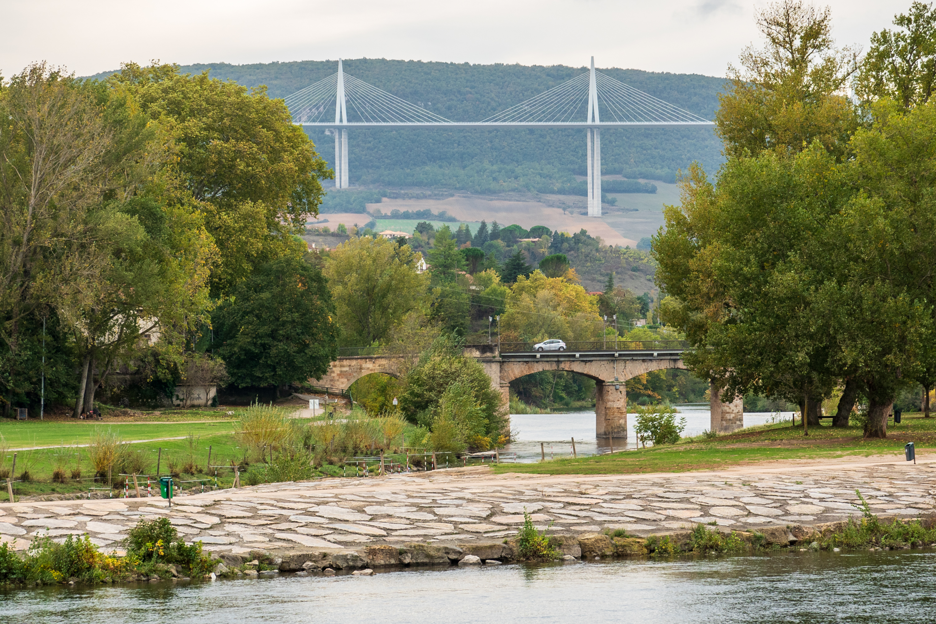 The Millau Viaduct is simply huge and amazing. Denise was disappointed that we passed under and not over it. As the wind was blowing, Fred had a more neutral opinion. (https://en.wikipedia.org/wiki/Millau_Viaduct)