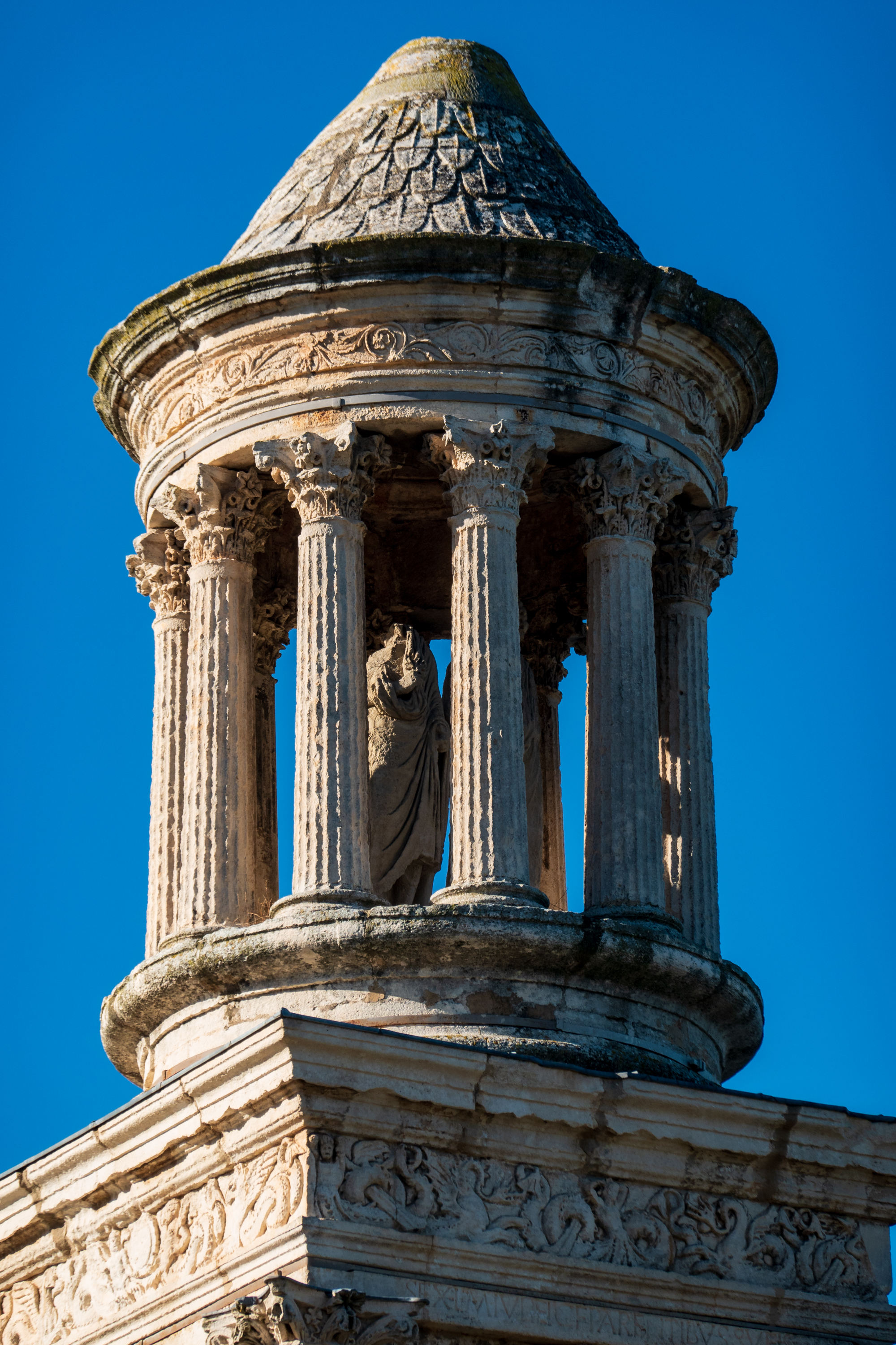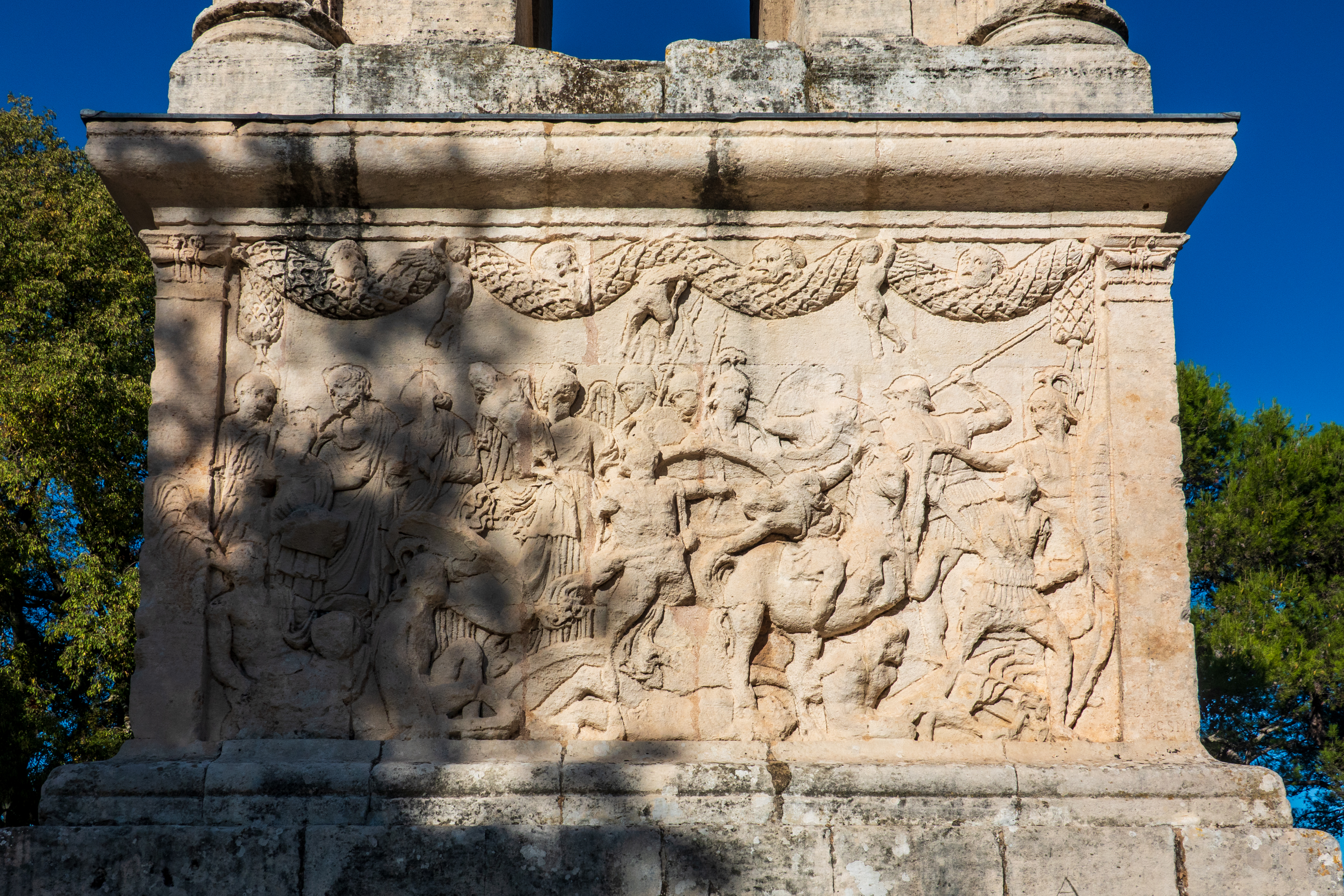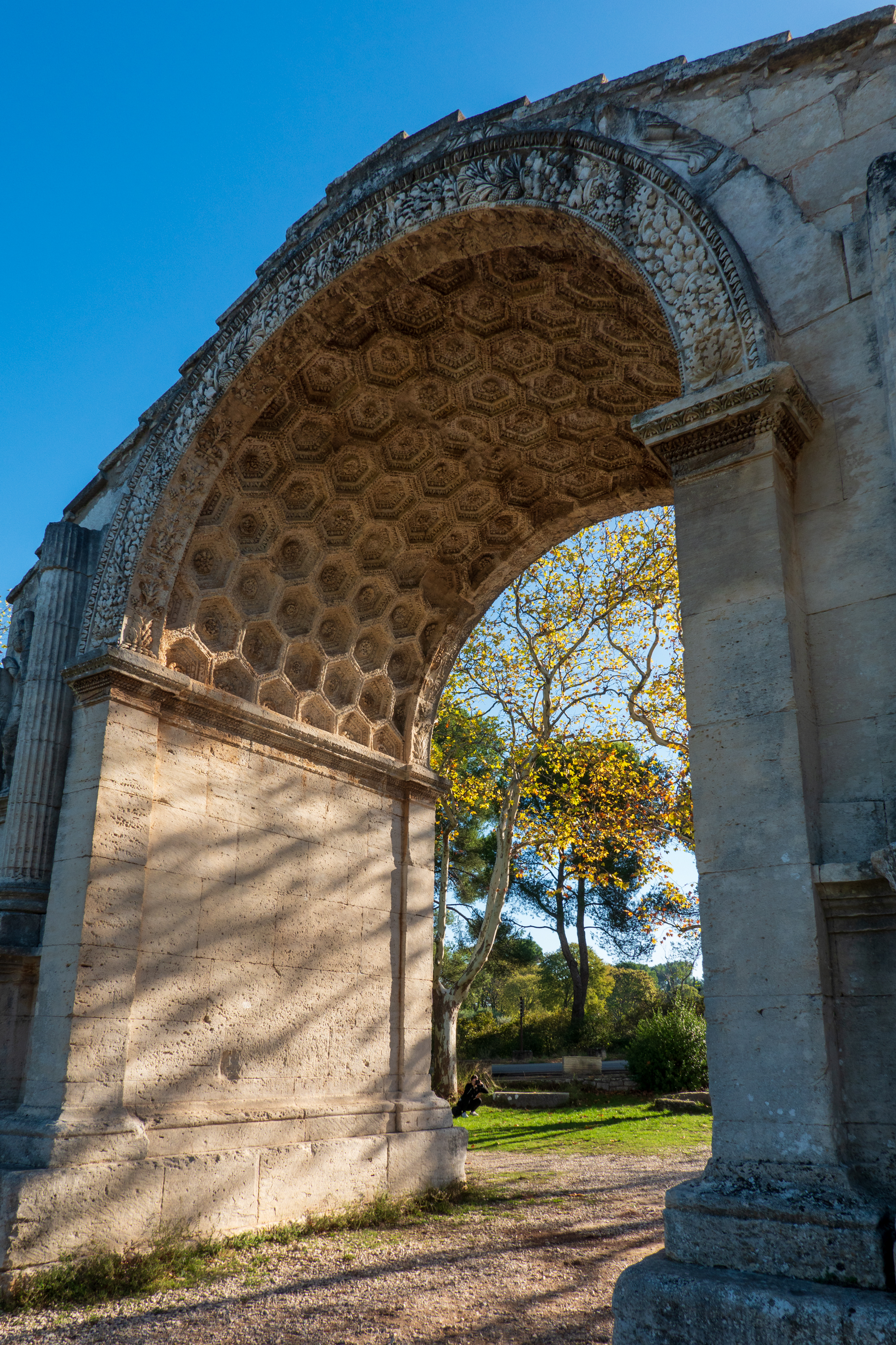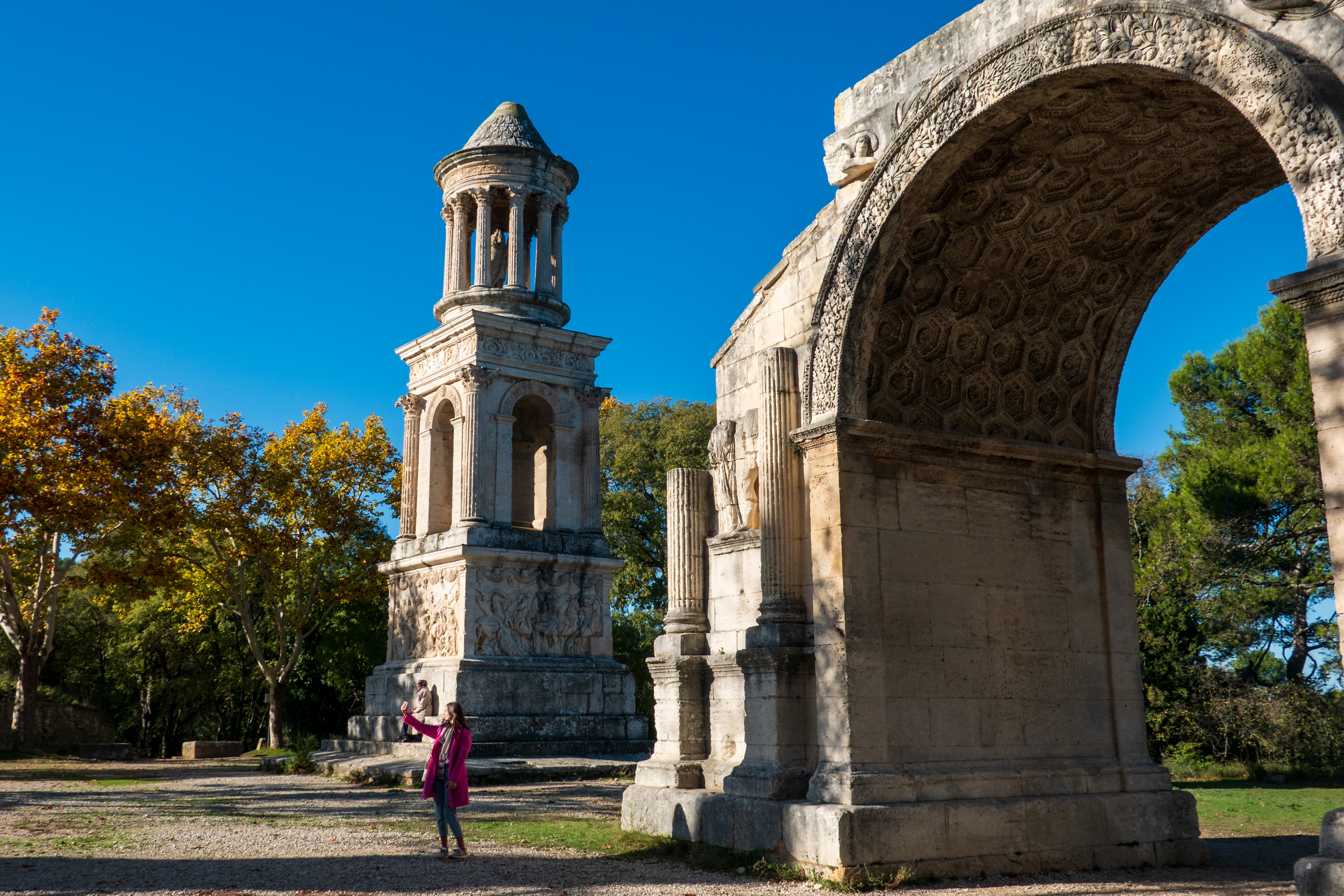 It was a gorgeous day with not a cloud in the sky. Unfortunately, the Glanum site was closed for Veterans/Armistice Day (The eleventh hour of the eleventh day of the eleventh month.) but we could admire the so called “Antiquities”, an arch and a funerary monument, beside the Via Domitian, the Roman road linking Italy to Spain.
