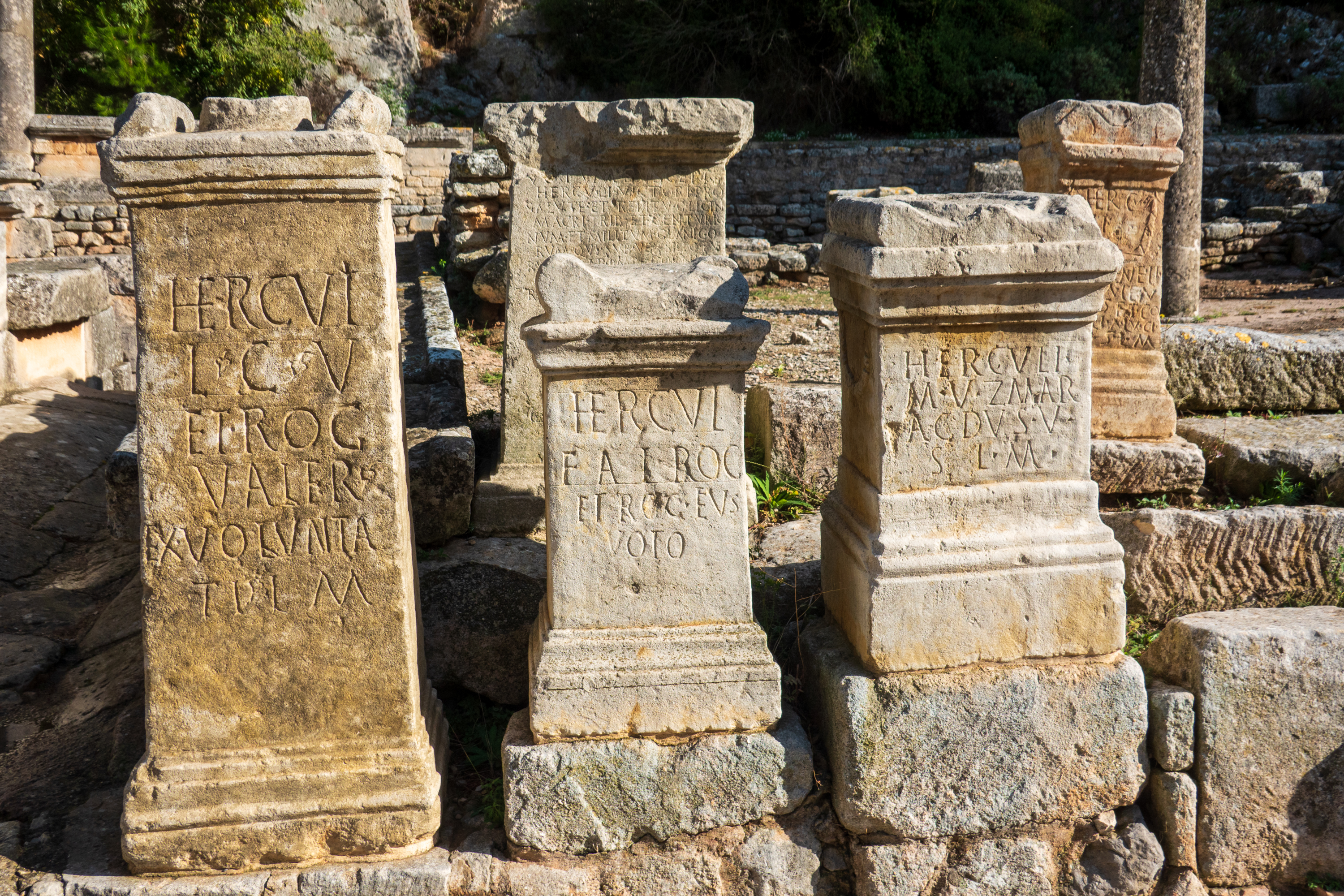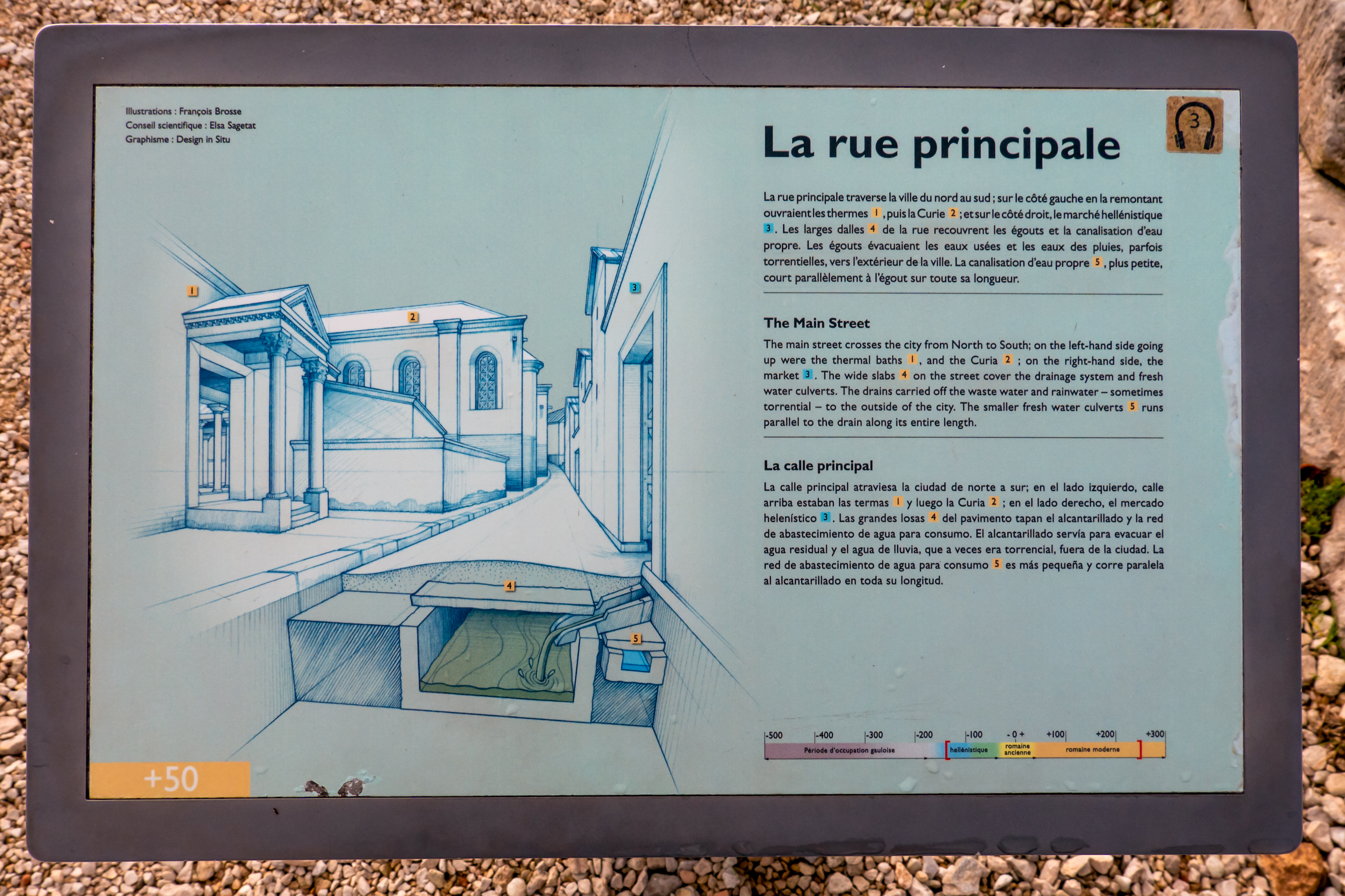 The Gauls established the first settlement, up in the narrow valley and surrounded by walls. By the time the Greeks arrived, the great gate had become the ceremonial entry to the temple sector, with the sacred spring. The spring, of course, is one of the reasons for settling here. By the time the Romans arrived, the spring was purely religious and they fed the city with an aqueduct.