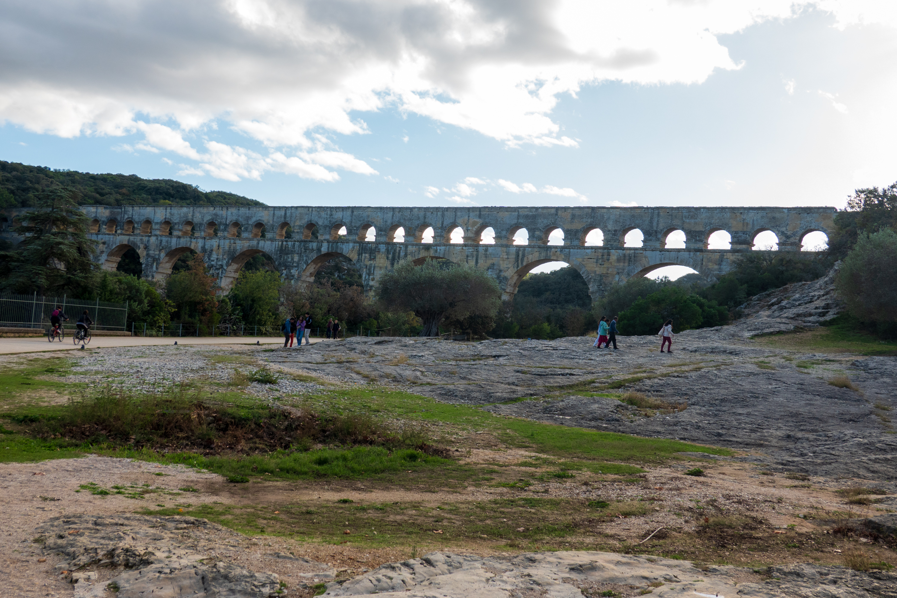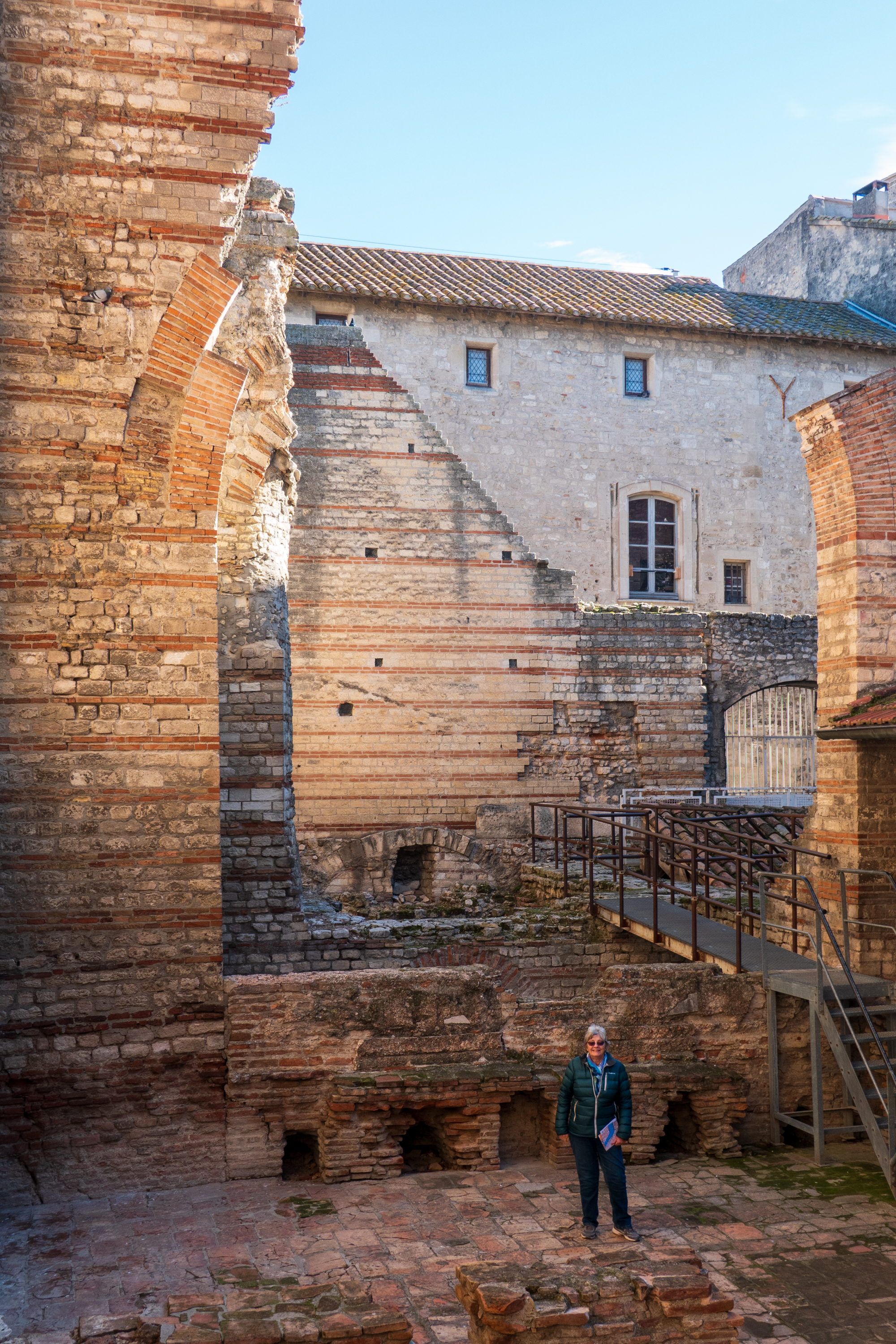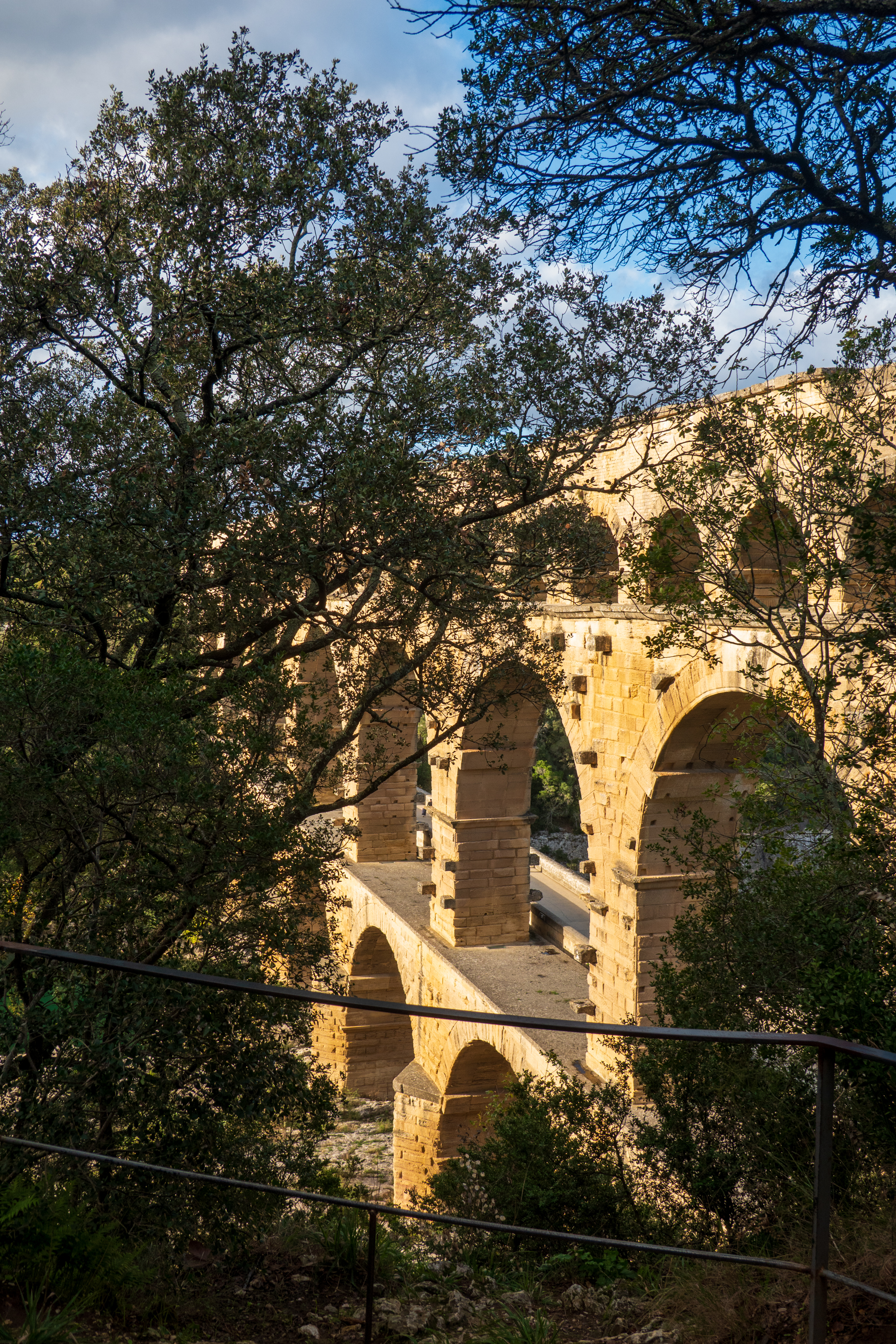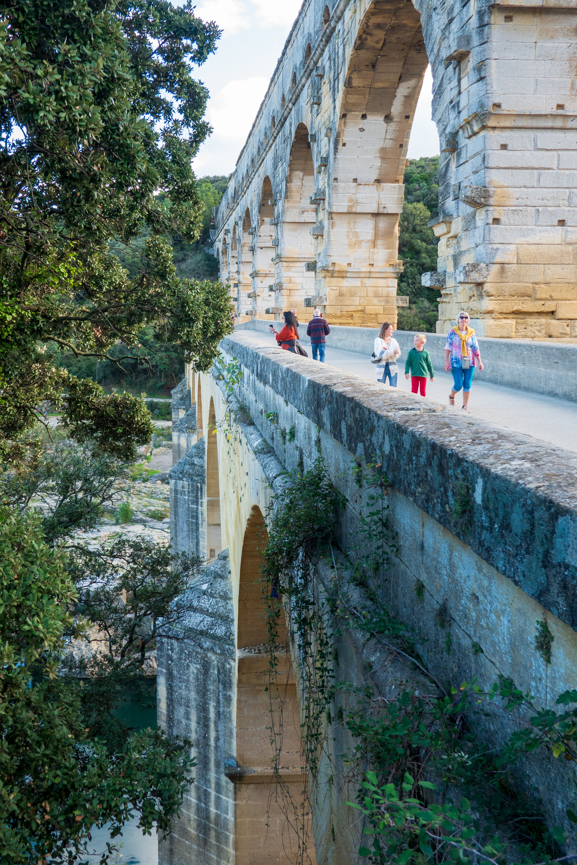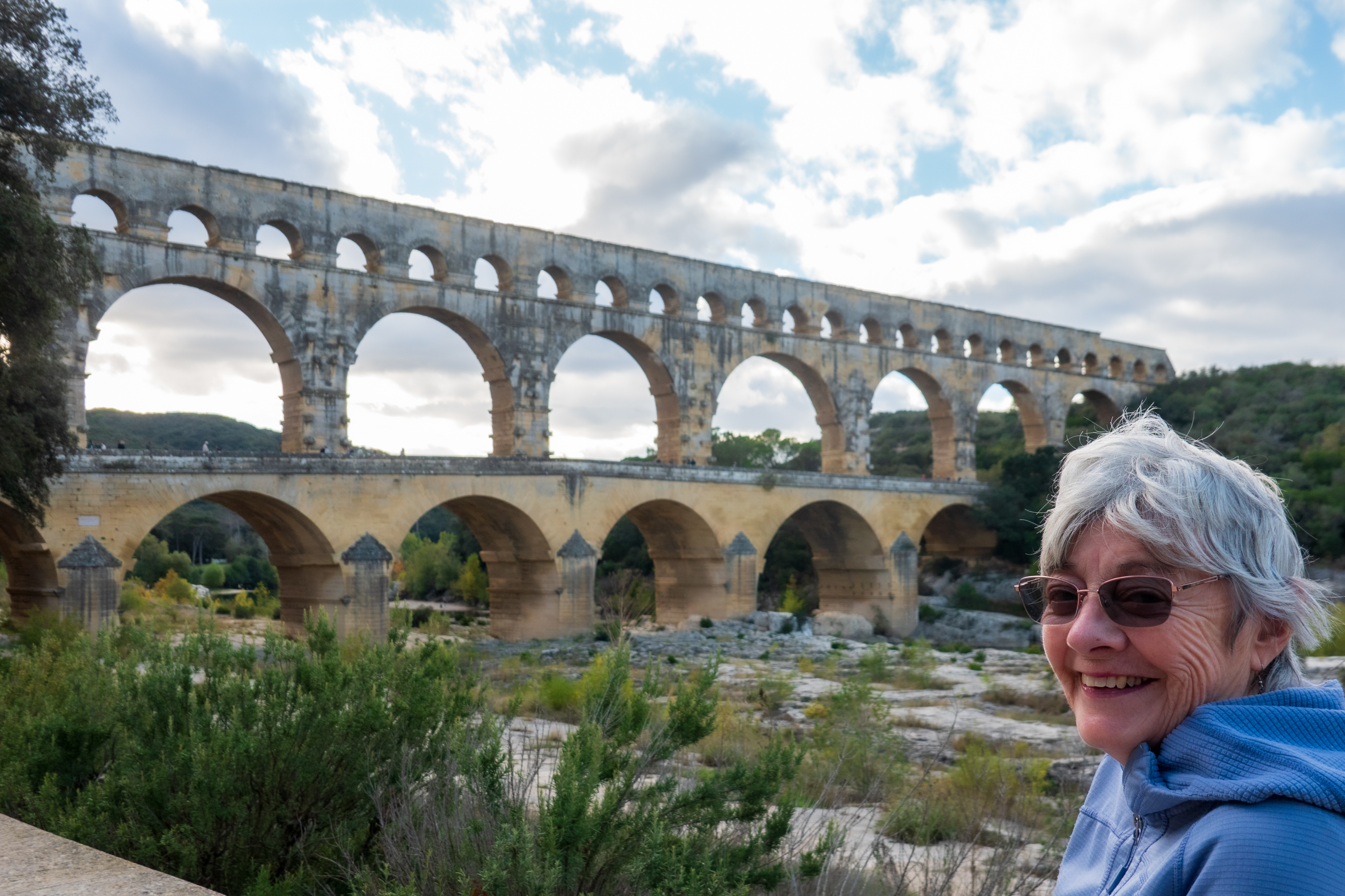 Roman ruins are no strangers after our stay in Jordan but we still enjoyed every stone! It is easy to forget that Caesar’s Gallic wars ended before the birth of the Christ and that for centuries thereafter, Gaul, modern France, was close to the very center of the Roman world. Lots of Romans, especially combat veterans, settled there and lots of Gauls became Romans soldiers and they too Romanized. And the Romans knew how to build! Everything from roads, to drains, to waterworks, on up to massive theaters, arenas, and temples. Arguably, their greatest contribution to civilization was the recognition that if people were to be healthy in a city there were two great needs – clean water and effective sewers. The Romans built their cities around both. And some of those water systems, aqueducts, were simply amazing.