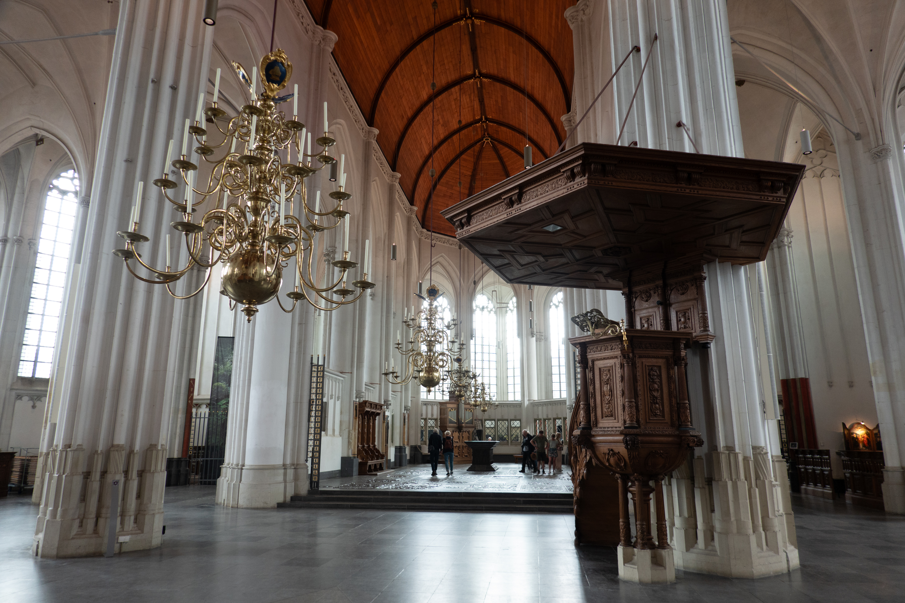After Denise raided the cheese shop, we moved on to the city tourist office and then went to the Church of St. Stevens. (https://en.wikipedia.org/wiki/Saint_Stephen%27s_Church,_Nijmegen) This was most interesting as it is now a Protestant church. It had been both Catholic and Protestant multiple times in the past, depending on the politics of the day and this was clearly visible especially when looking at the altar.