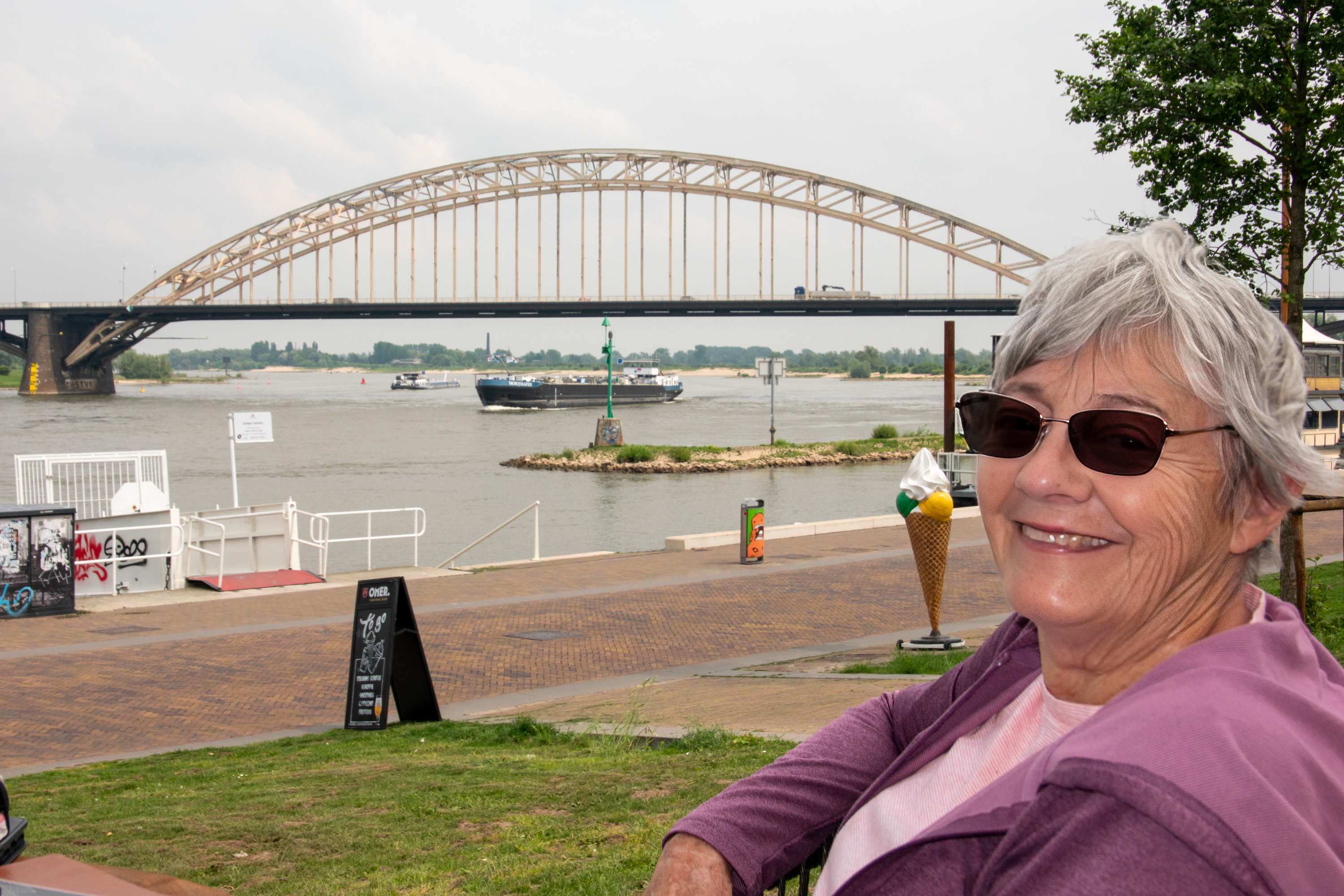 We could not resist and thoroughly enjoyed our lunch as we watched barges passing by on the river. Trivia. This bridge was actually built by the Germans as the Dutch blew the original, 1930’s bridge, when the Germans invaded. In Market Garden, this was the bridge that was not too far, but was, perhaps, too late.