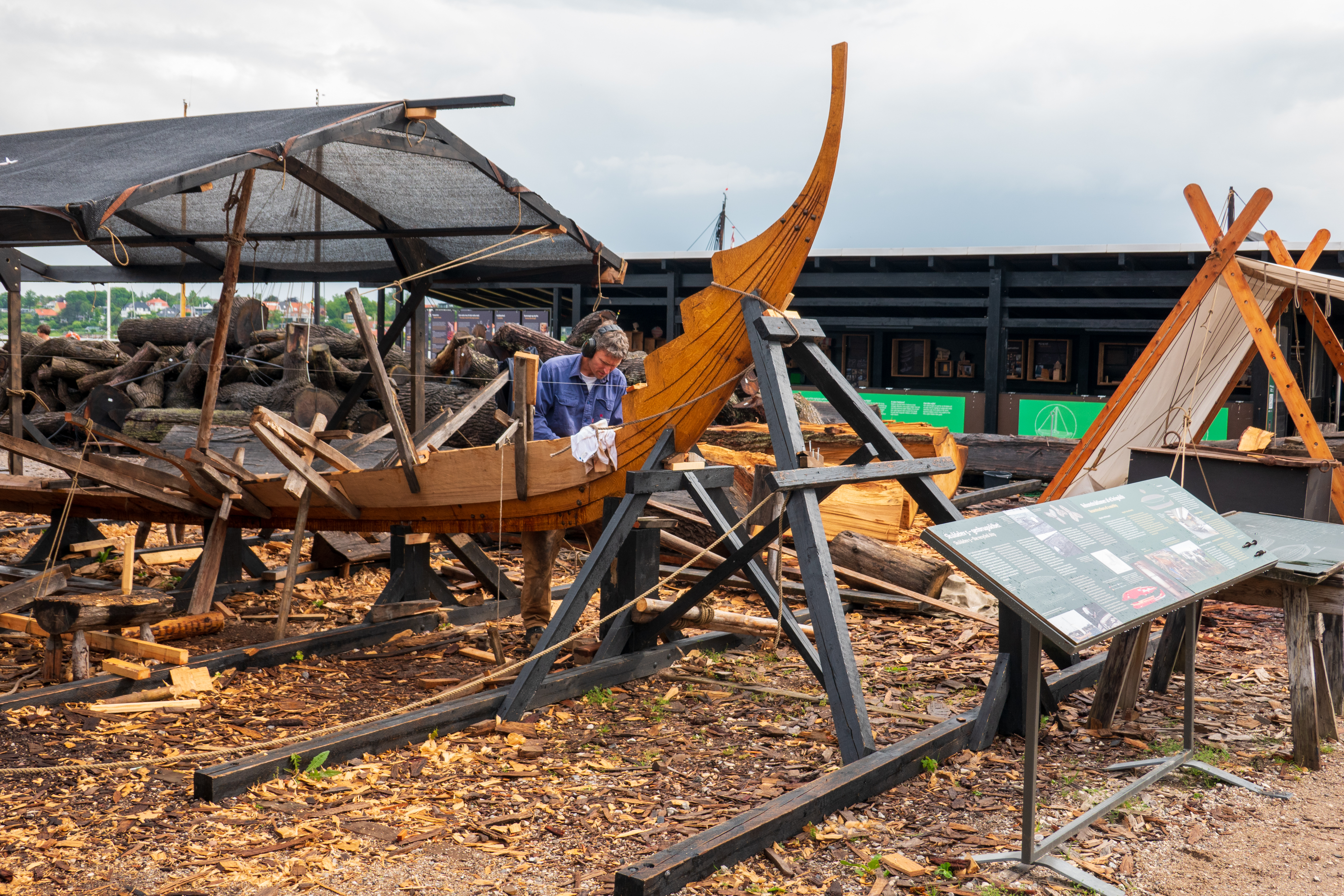 We headed north to Roskilde and camped in a parking lot. Not the height of luxury, but it was quiet and there were no knocks on the door in the night. Next morning we set off on our bicycles for the Viking Ship Museum, despite the nasty black cloud on the horizon. (https://www.vikingeskibsmuseet.dk/en/) Sure enough, a 15 minute bike ride later, the heavens opened, just as we were locking up the bikes. We headed for coffee and dried off a bit before joining a 45 minute tour in English.