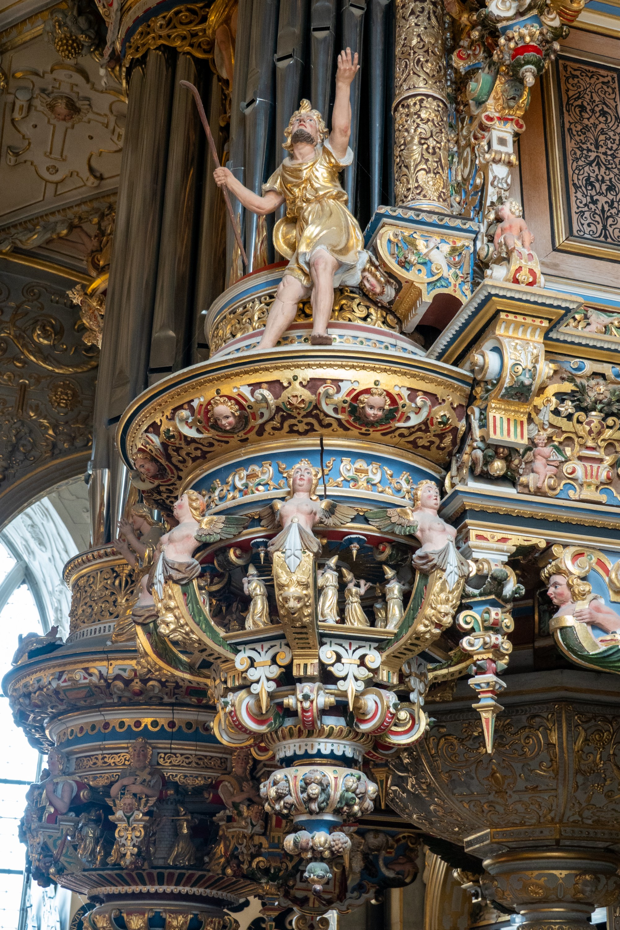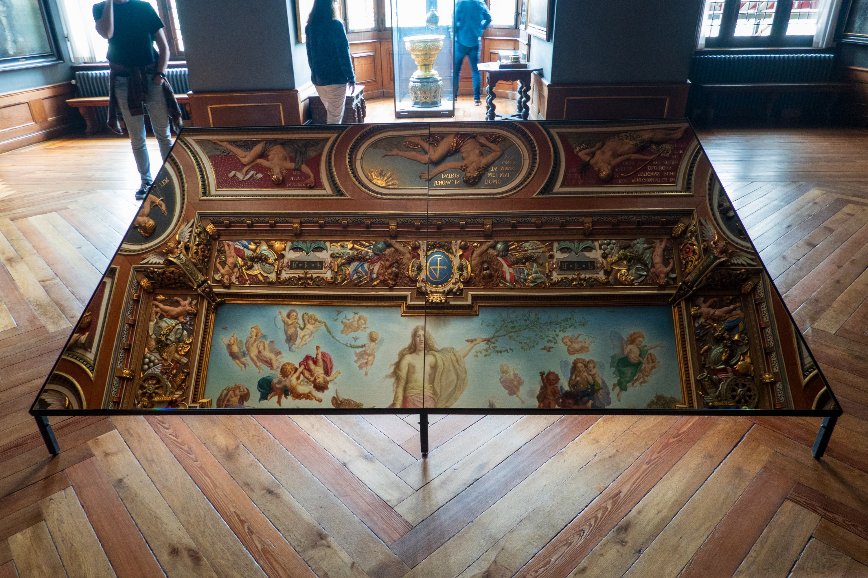 Preparations were underway for a wedding but we were permitted to enter the gallery running the length of the chapel and to marvel at the ornate ceiling and at the number of royal boxes each with its individual crest.