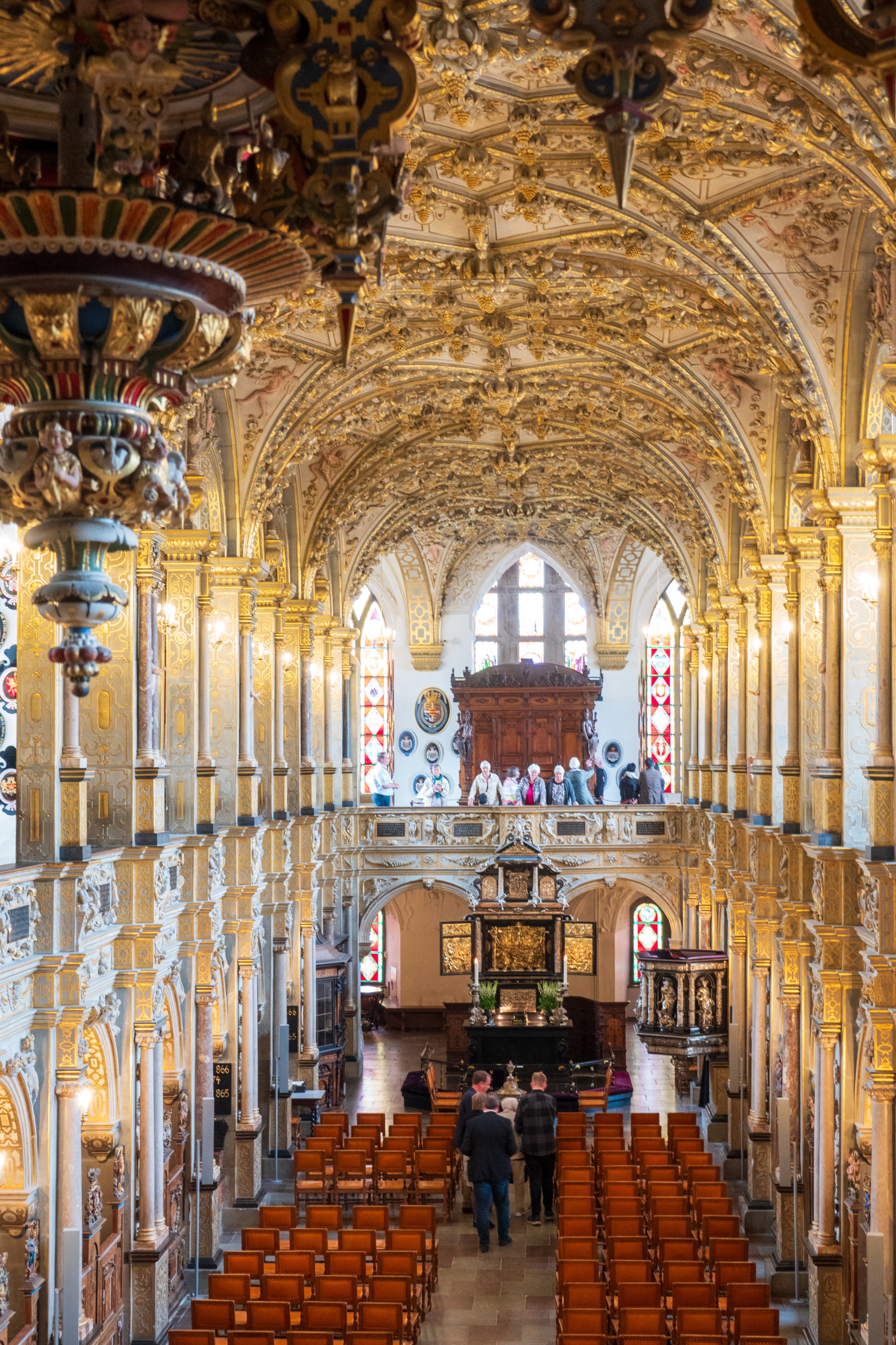 The highlight from our point of view was the chapel, which was simply glorious. We were walking along a corridor when one of the docents told us to hurry – the chapel would be opened for only a few minutes before the wedding. Wonderful opportunity to see everything lit up and decorated.