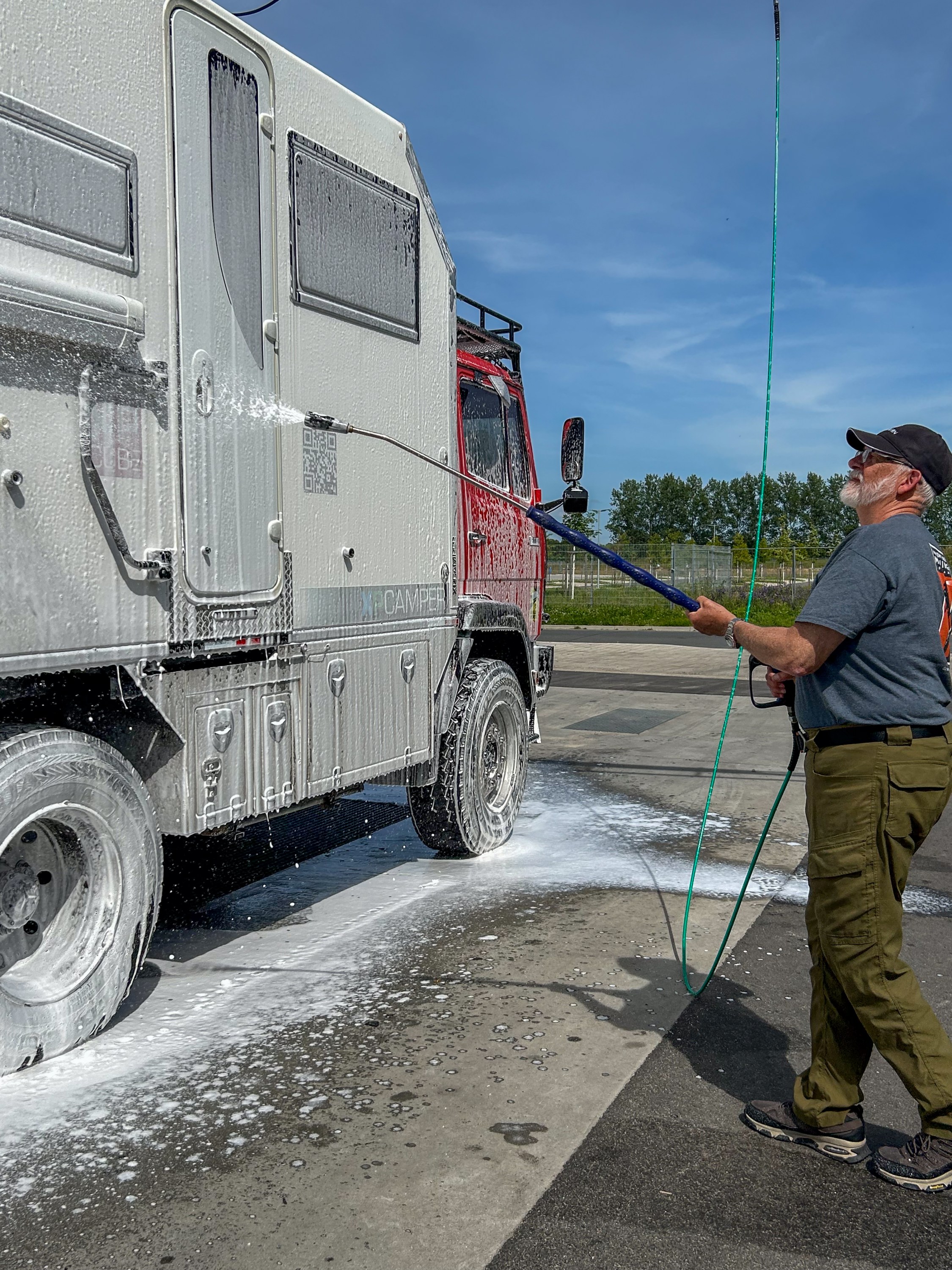 Then we went off to wash the camper as it was dirty. It had proved hard to find a car wash that could handle a camper. We followed a gentleman washing his tractor trailer in preparation for a show! Fortunately he could explain how everything worked.
