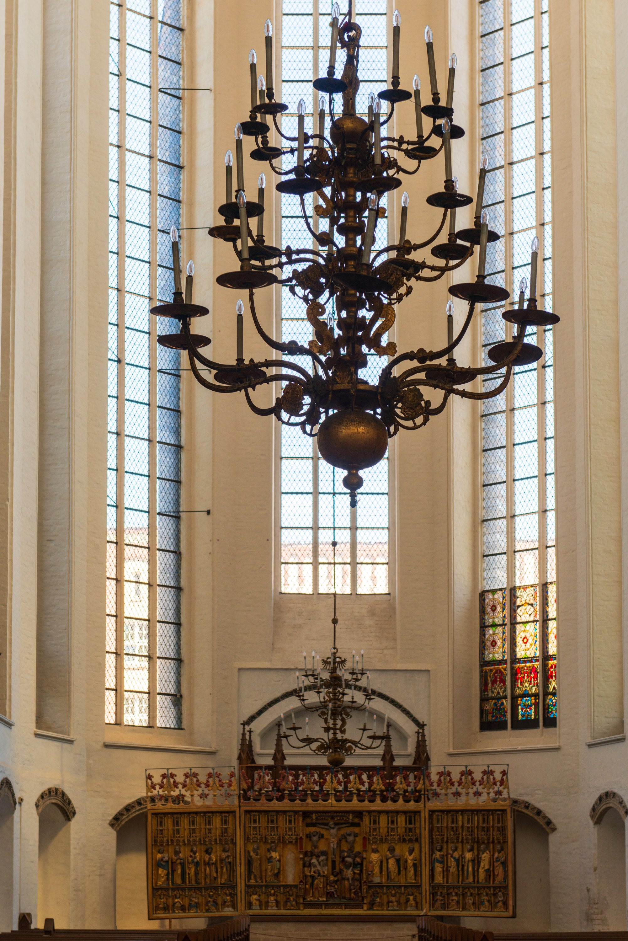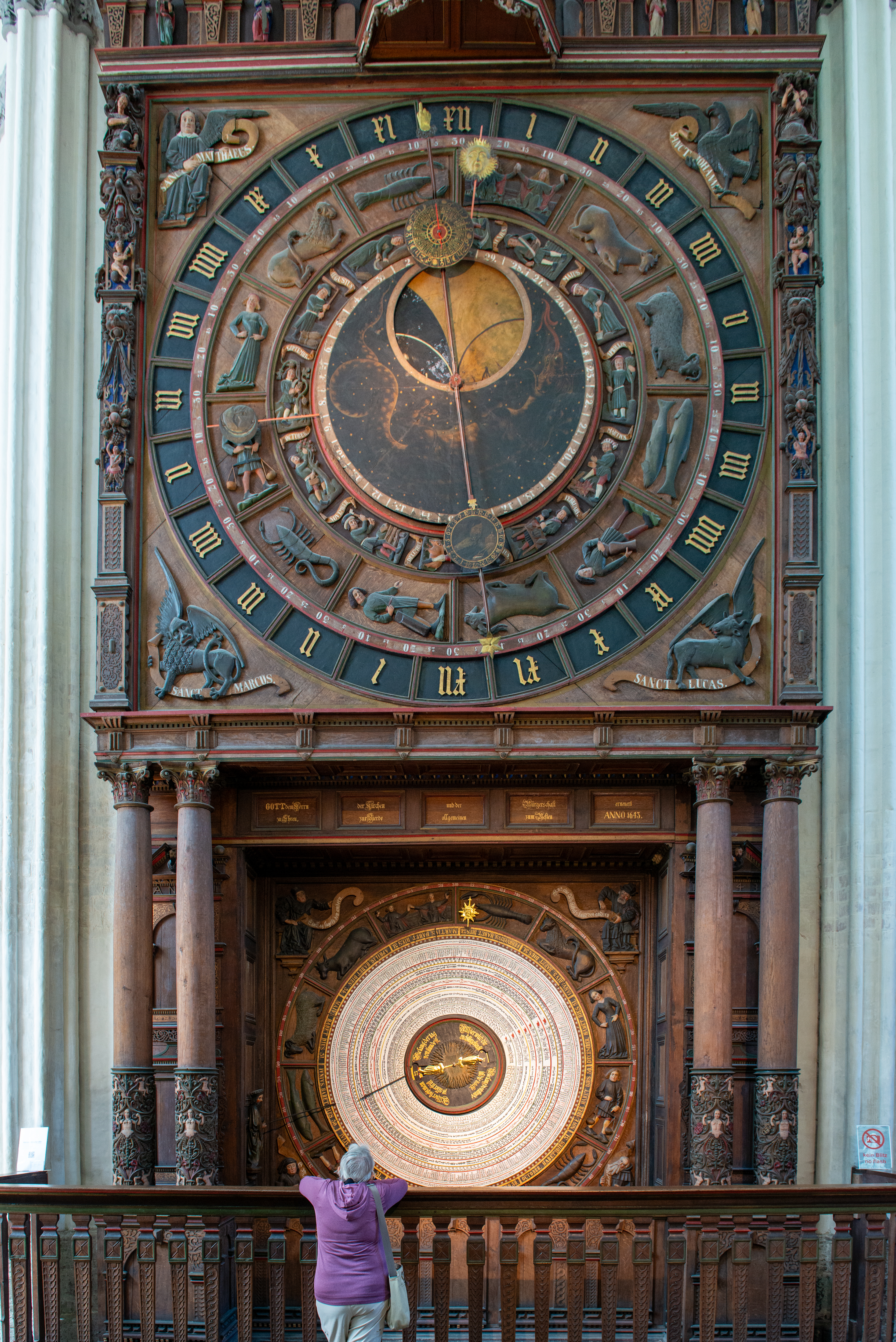 The next day we headed to the Marienkirche, the Church of Saint Mary. A first hall church was built there in 1290, rebuilt as a three nave church and basilica in 1290 and completed in 1398 and 1454. 9https://en.wikipedia.org/wiki/St._Mary%27s_Church,_Rostock)