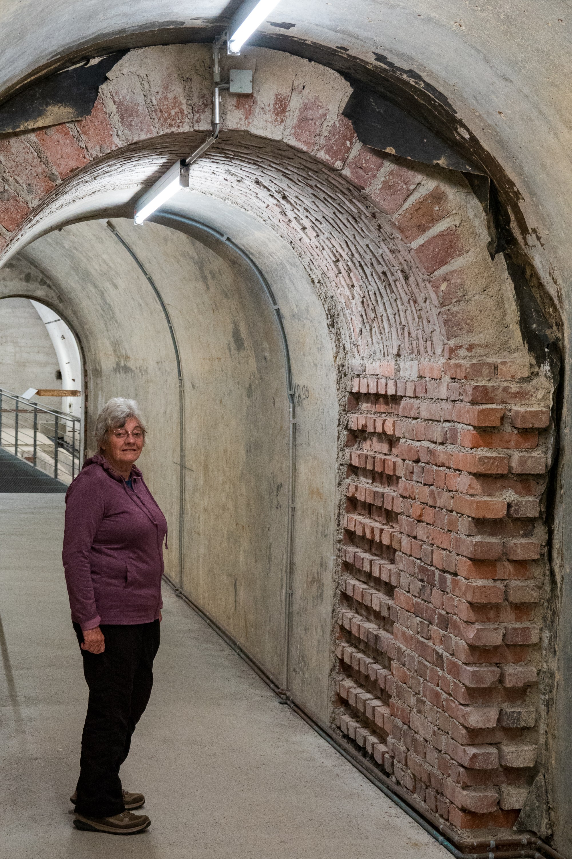 Denise showing the elaborate finishing of the tunnels. Once they were done, you had no sense of being underground.There were offices, kitchens, latrines, showers, and everything else.