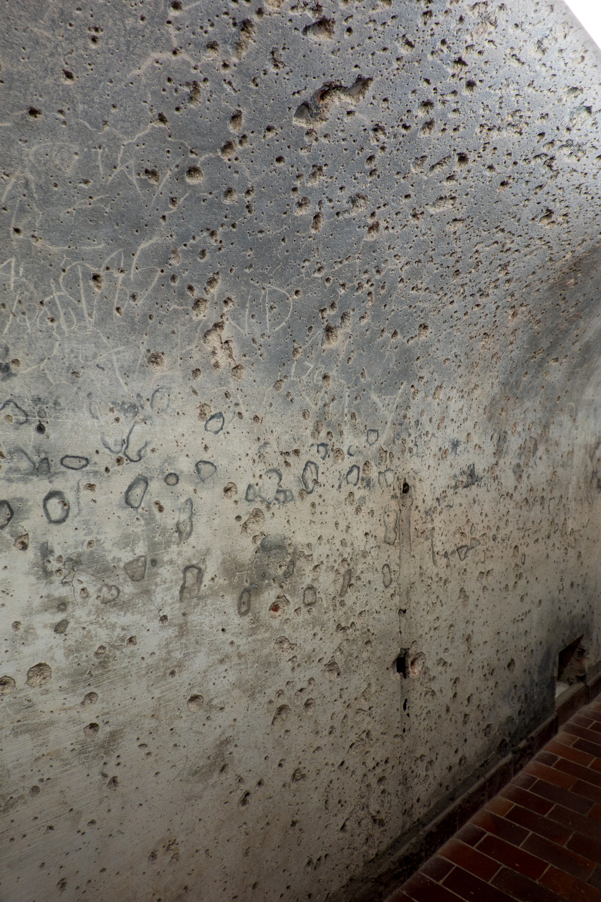 The tunnels have service tunnels under them. A US soldier used a hand grenade to break into the lower tunnel.The grenade fragments damaged the tunnel wall.