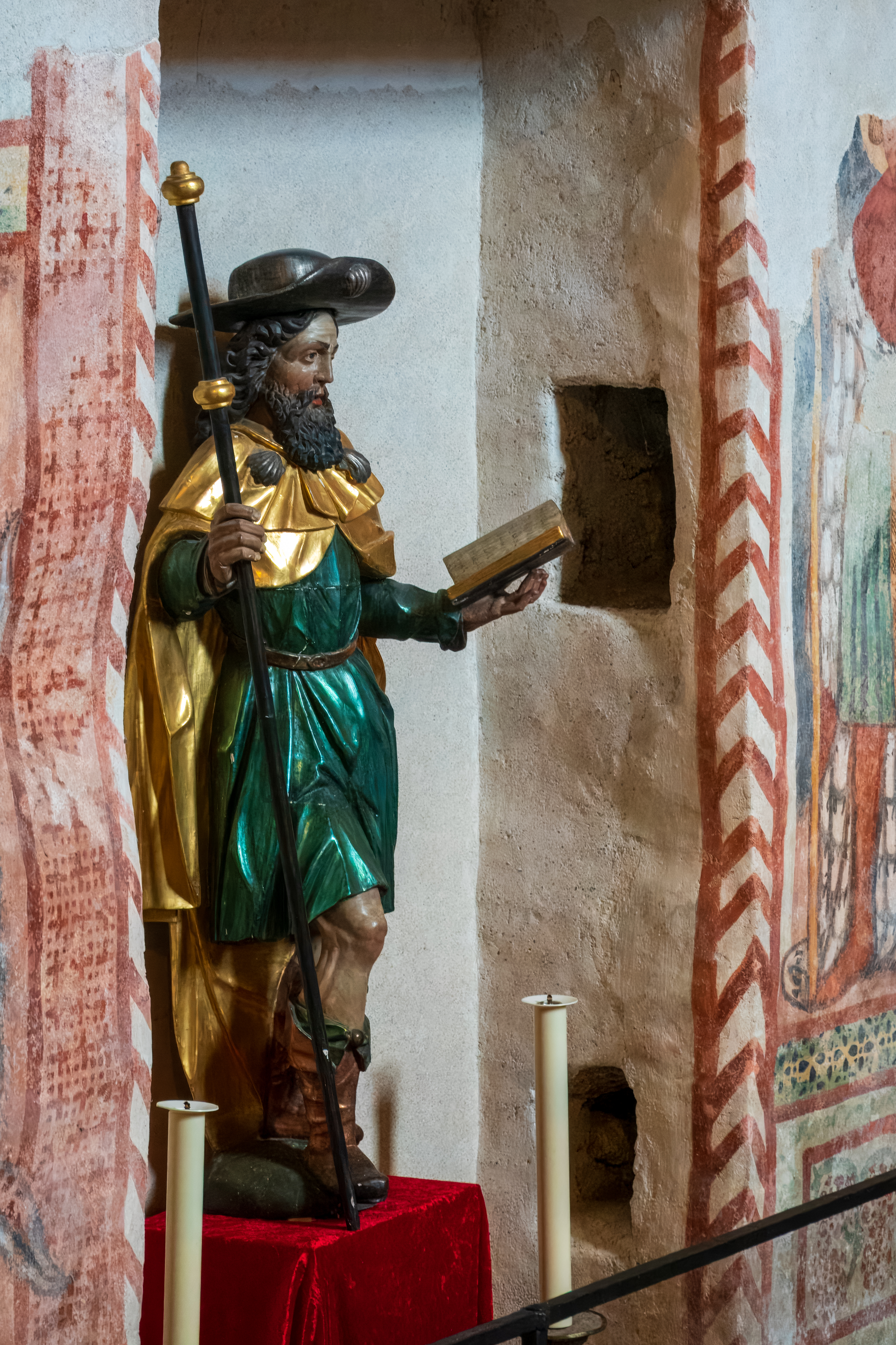 Amazingly, this church, which dates from around 1200, is a stop over on several famous pilgrimage routes, including the Saint James (Santiago) route to Compostela. (https://de.wikipedia.org/wiki/St._Jakobus_(Urschalling) (You may need to have your browser translate.) The frescos are wonderful and the tiny church is a gem.