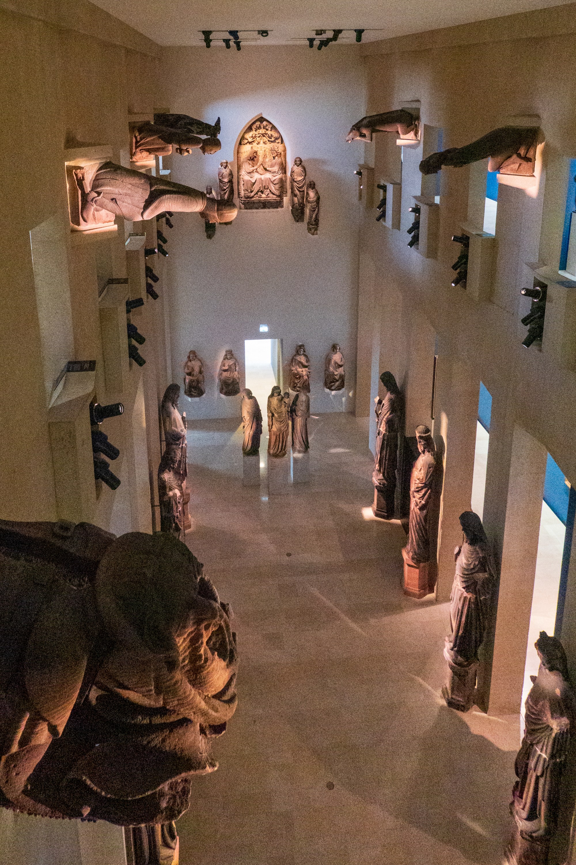 The Freiburg Minster is famously always under repair and many of the original stained glass windows and statues have been removed to the museum for display. (Local wags insist that if you see a picture of the Minister without scaffolding, it is Photoshop.) Duplicates of the statues and windows are now in the Minster and the originals are safe in the museum. The museum was air conditioned which also felt delightful on a hot day.