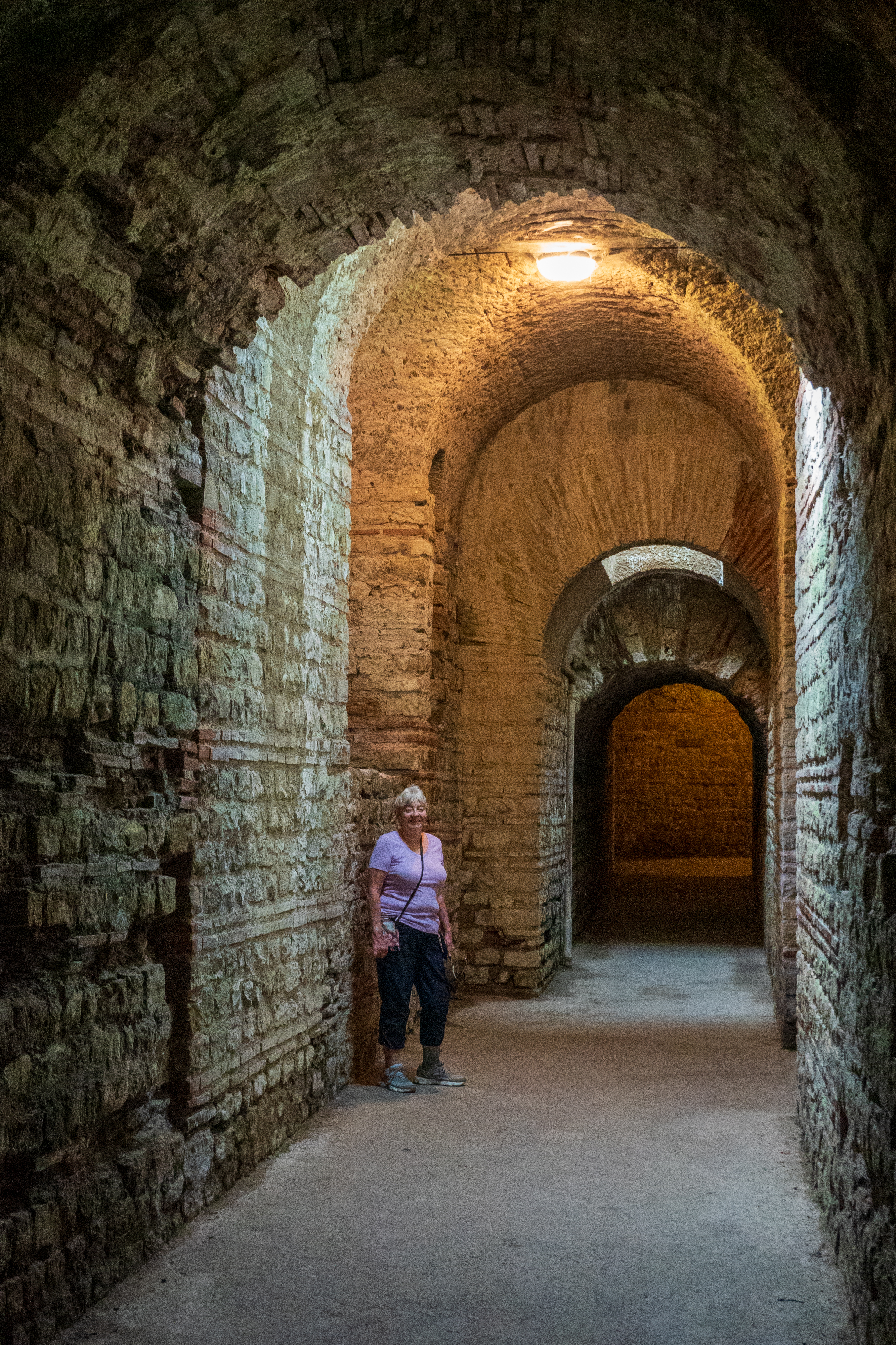 This is the only Roman amphitheater that we have visited with an intact wooden floor. This is probably because of the Bread and Circus festival that used to be held in Trier. Prowling under the floor of the arena made it especially chilling. Fans of movies like Spartacus and Barabbas will love it. (And keep yer Airplane! jokes to yourselves!)