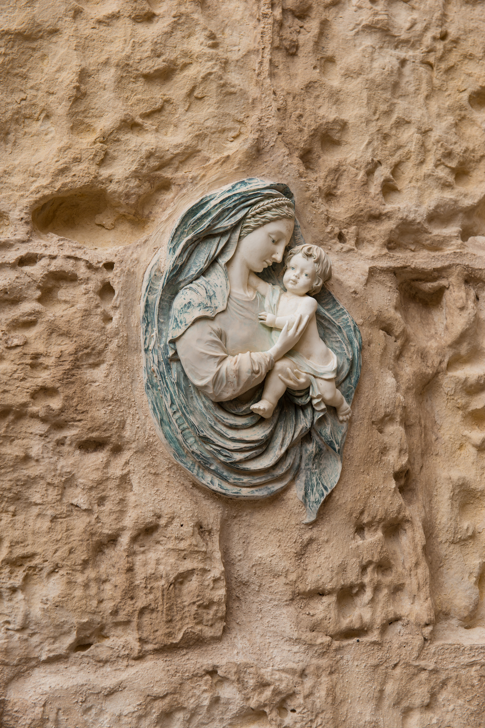 Virgin and Child embedded in a house wall.